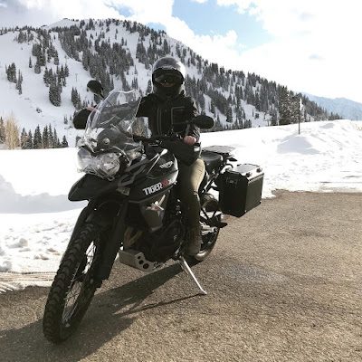 Sean and Brittney getting out of the house by taking drives up the canyon on Sean's new motorcycle! (Brittney all decked-out in leather riding gear and super fancy helmet)