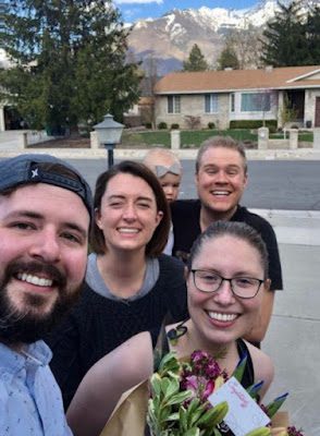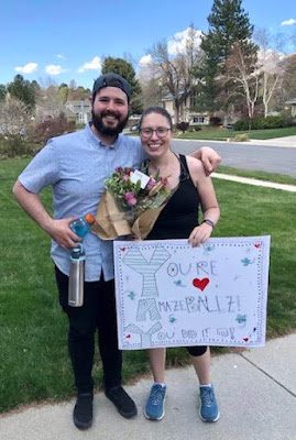 Since school and the marathon were cancelled because of Covid 19, I never went to Utah, and Brittney had to run her first half-marathon around her neighborhood and adjoining neighborhoods, all by herself! But she rocked it, and had her fan-club waiting at the finish line with signs and flowers.
