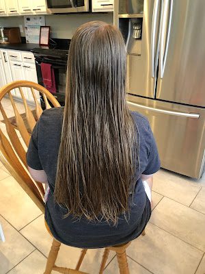 Getting up enough courage to cut about ten inches off of Merinda's hair,