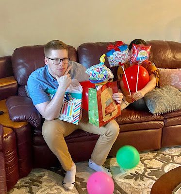 Even though he said he didn't want a party Iris threw him a surprise party at her parent's home in VA.