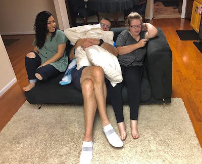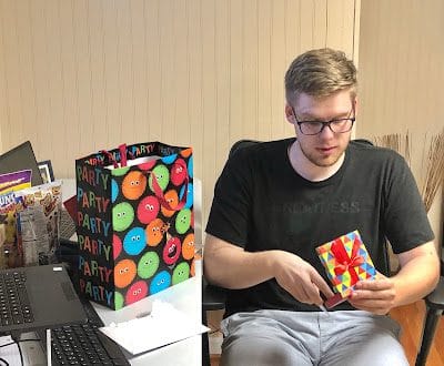 In their cute little basement apartment, Breck opened our gifts which included an Amazon gift card,