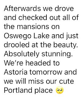 Brittney and Sean went to Portland, Oregon for their one year anniversary. Brittney is so good to keep me up on things so I've posted the pictures she texted me along with her explanations...