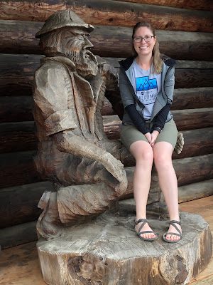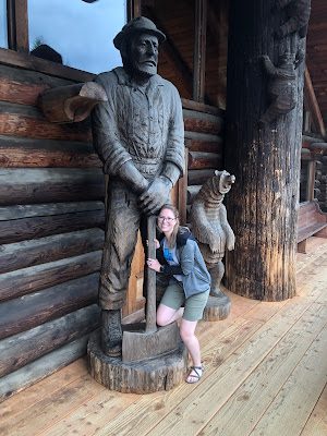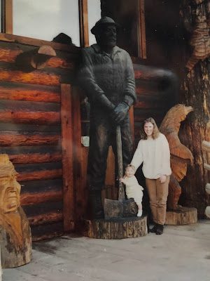 (Brittney "then" hanging onto the carved man's ax)