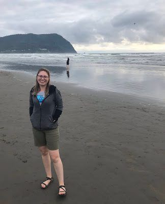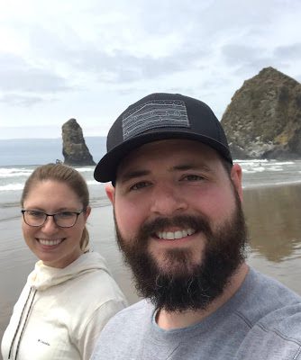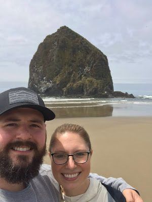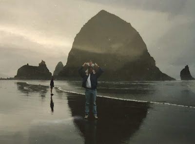(Brittney "then" at Cannon Beach on Brad's shoulders)