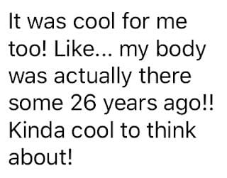 (Brittney "now" 26 years later sitting on the same guy's leg)