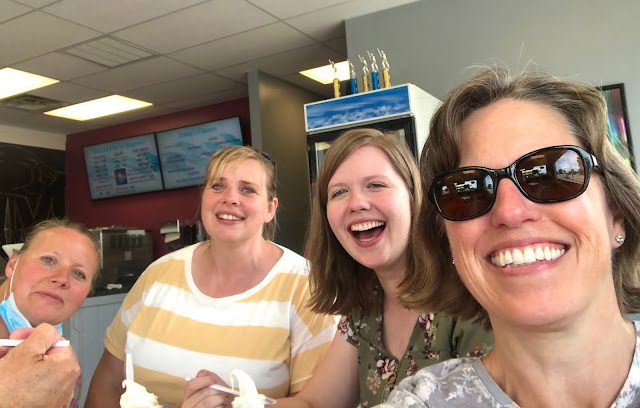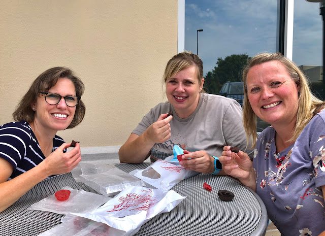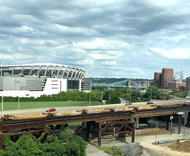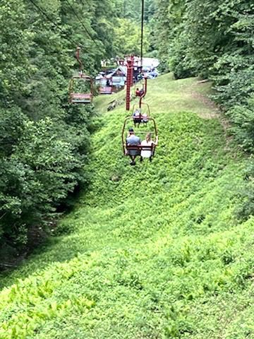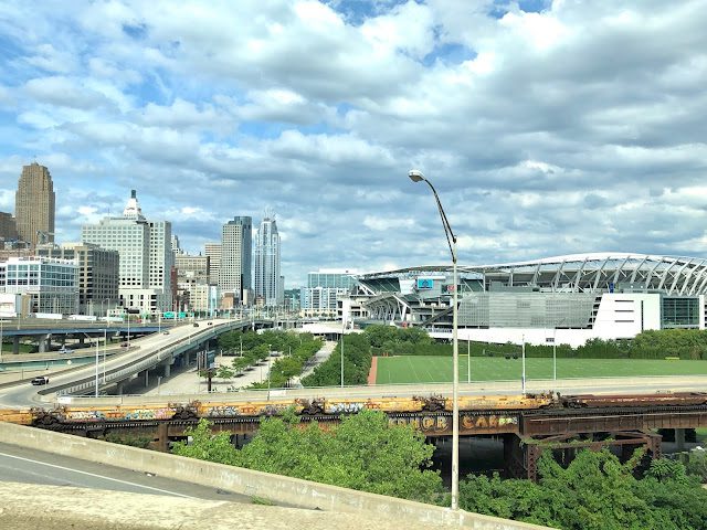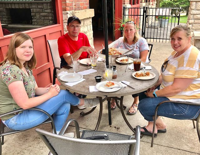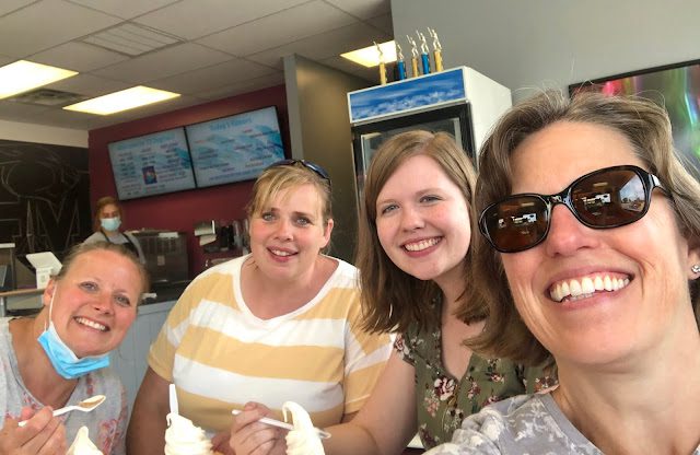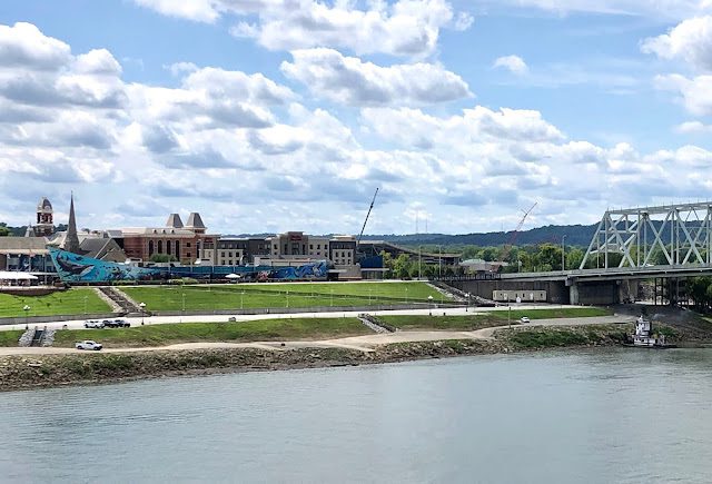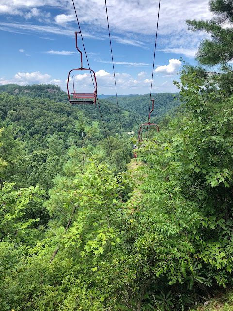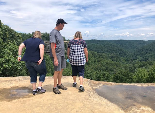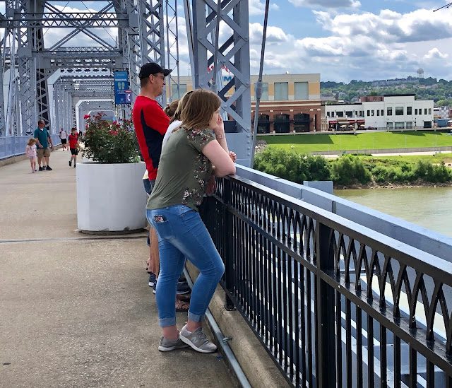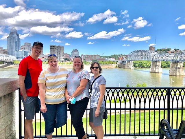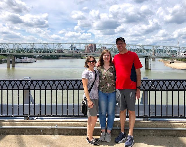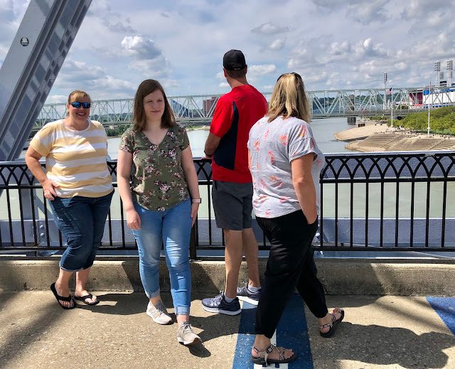 We had a wonderful visit with Becky and Beth, and we're so glad they came to visit!! Some of the highlights were sight-seeing in Cincinnati and Newport on the levee, exploring Natural Bridge State Park and getting lunch at The Works in Loveland, Ohio and dessert at 12 Degrees Italian Ice, shopping for souvenirs in Lexington and introducing them to Old Kentucky Chocolates, showing them around Georgetown, cooking cobbler on the grill, playing internet games, walking around the golf course in our neighborhood, and just catching up with one another.