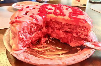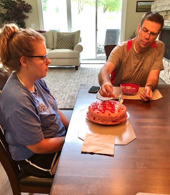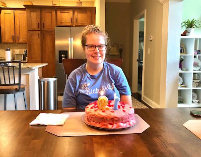 We made her a strawberry cake with fresh strawberries inside, and homemade cream cheese frosting (her favorite).