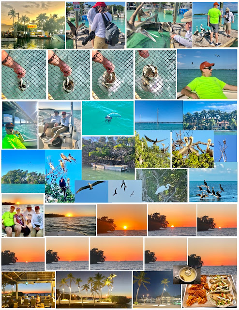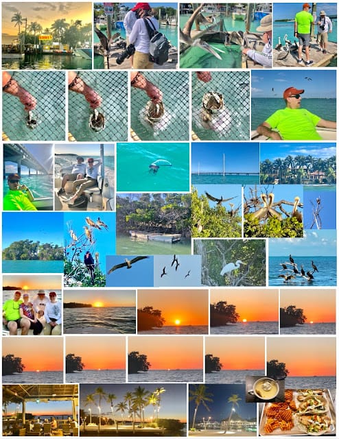 Going on a sunset cruise to bird island, fighting Pelicans while feeding Tarpon, and eating fish tacos at Robbie's Marina, Islamorada, Florida