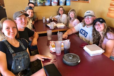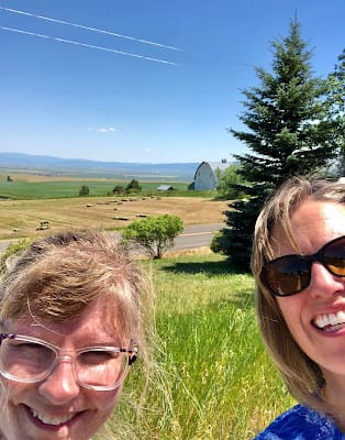 Our next adventure was in Grangeville, Idaho. It's been awhile since we've visited Cindy in her hometown, plus I was so excited to drop off a blanket I made for her birthday. During our stay we had a blast visiting and eating Mexican food (just steps from her house) with her boys and their significant others, catching up with Cindy (and her two cats) in the house she just purchased from her son Wyatt, exploring her town (& little hospital where she works, also within walking distance to her home), and surrounding mountains, seeing a giant mammoth from bones excavated in 1994 from nearby Tolo lake, and visiting a working monastery in the picturesque town of Cottonwood.