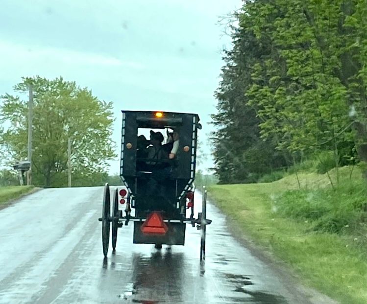 This past weekend, after spending most of the week in Detroit for work, Brad and I drove onto Cleveland, Ohio, so that Brad could drop some things off for work since his company's headquarters are located there. We spent Friday in the Cleveland suburbs, window shopping at an outdoor mall, grabbing a bite to eat at Bibibop Asian Grill (so good!), and then driving around Parker's (Brad's company) headquarters. On Saturday we drove through Amish country (or more specifically, Middlefield township in Geauga county, Ohio) checking out Amish furniture, test-tasting Amish goodies at the bakery (best glazed donut & apple fritter we've ever had), and buying must-haves from the Amish market (spices & jellies). While window shopping at an Amish store we even got free Amish ice cream (the creamiest we've ever had!). I took a lot of pictures of the Amish farms, and the Amish people at work and play, from our bug-infested car windows (no, it wasn't snowing), trying to be as inconspicuous as possible! The Amish country is so beautiful and the Amish lifestyle so intriguing to me, maybe because a part of me so wants to live the Amish life!