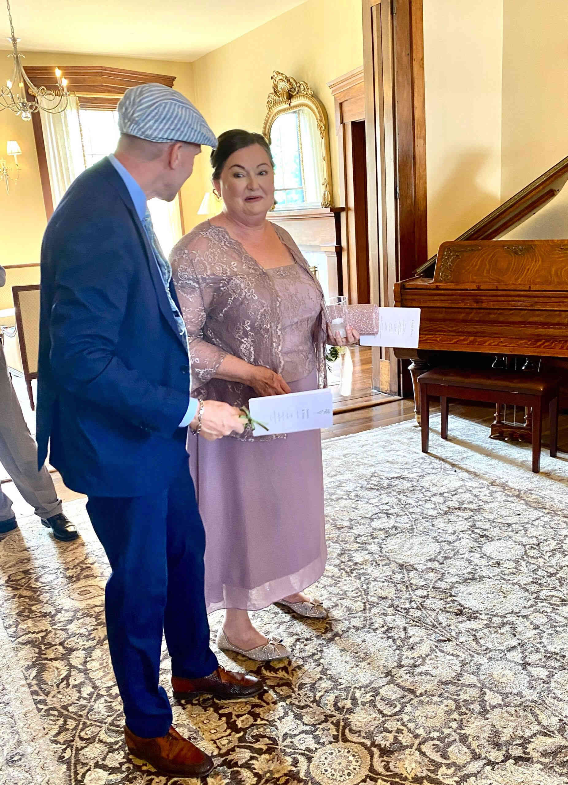 Parents of the groom (and good friends of ours), Jamie and Debra having a deep conversation (they're not mad, even though it looks like they are ... I'll blame that on the one taking the picture☺️ I just wanted a picture of them together since they both looked so stunning in their wedding attires).