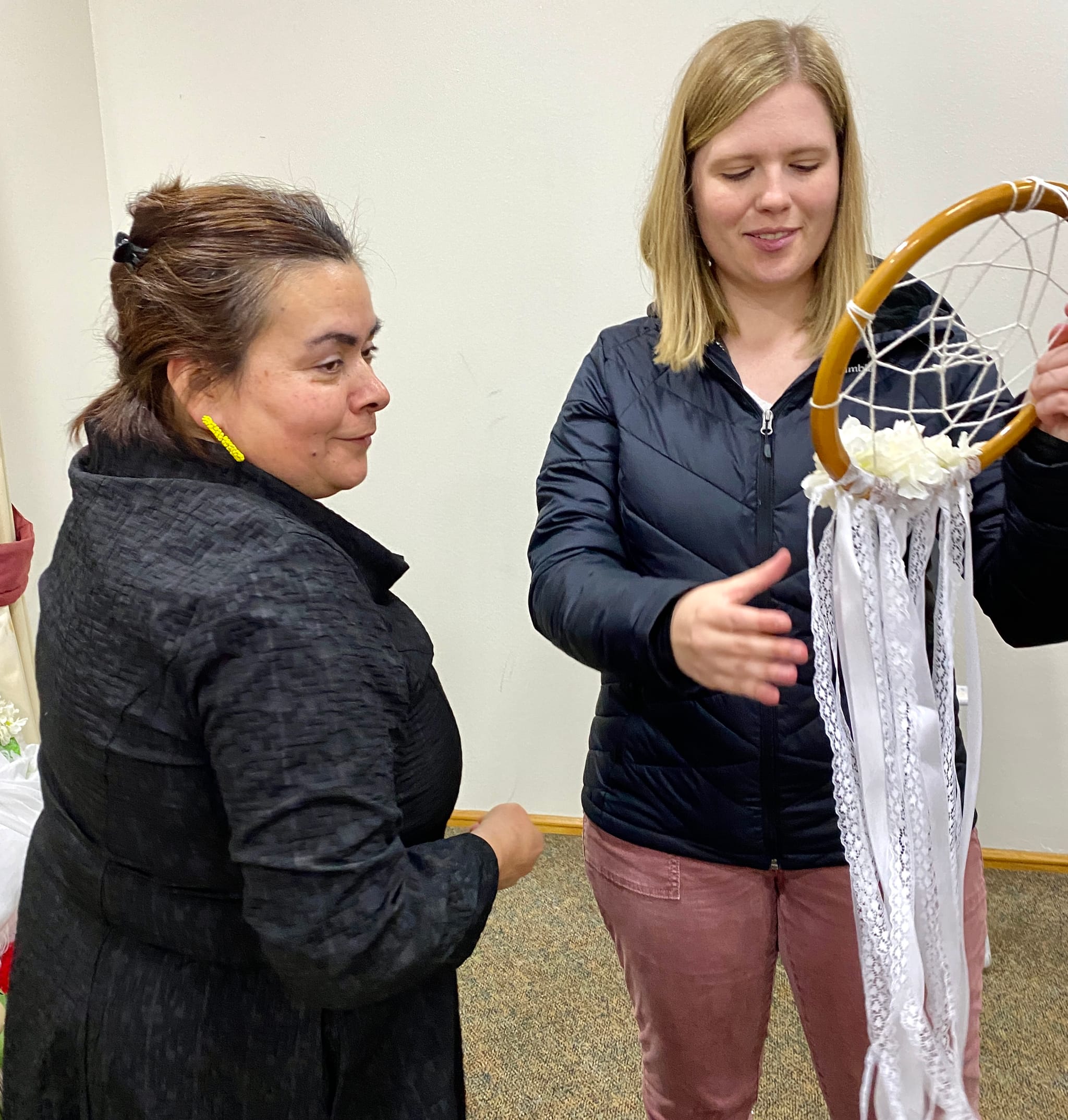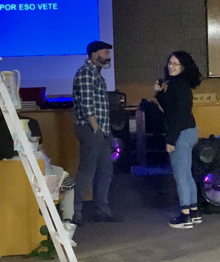 Raul setting up the sound system for karaoke, and the decorated bench where Aubrey & Raul had pictures taken with every family in attendance