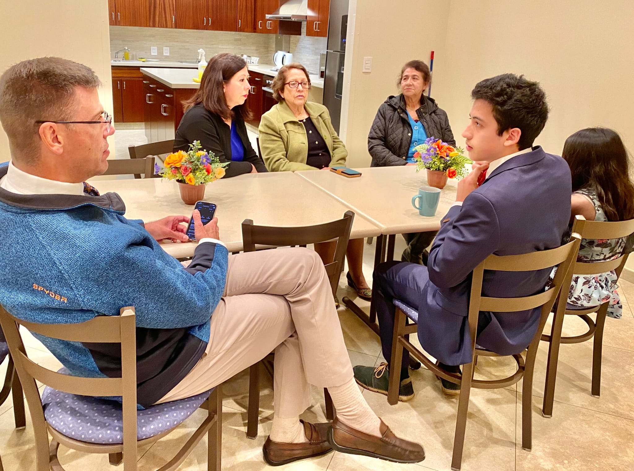 Raul's family with Jake, the missionary who baptized Raul's parents when Raul was three years old
