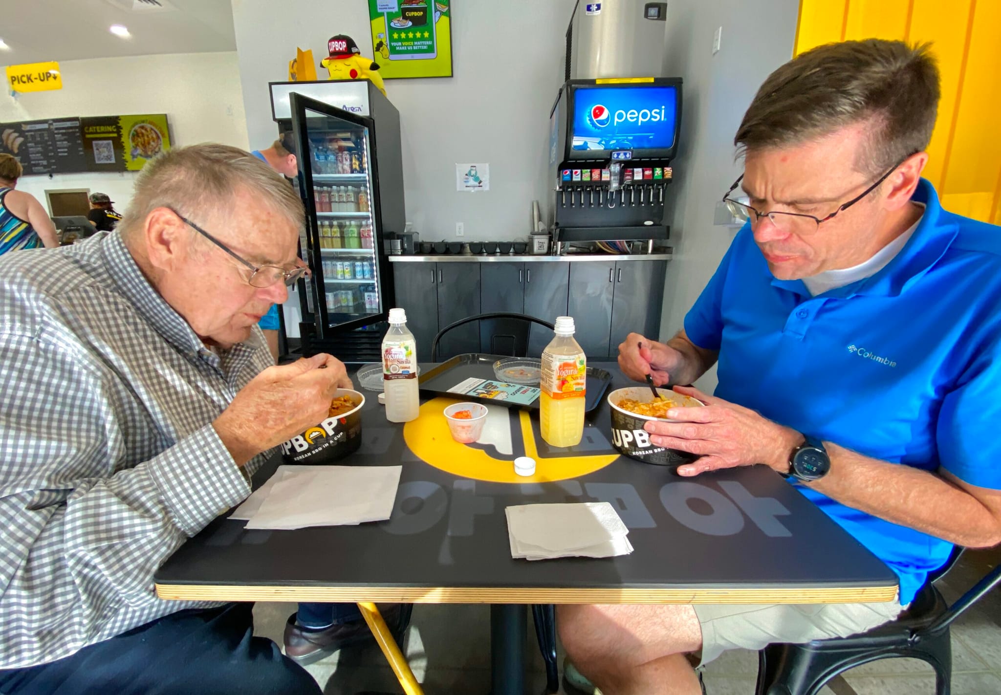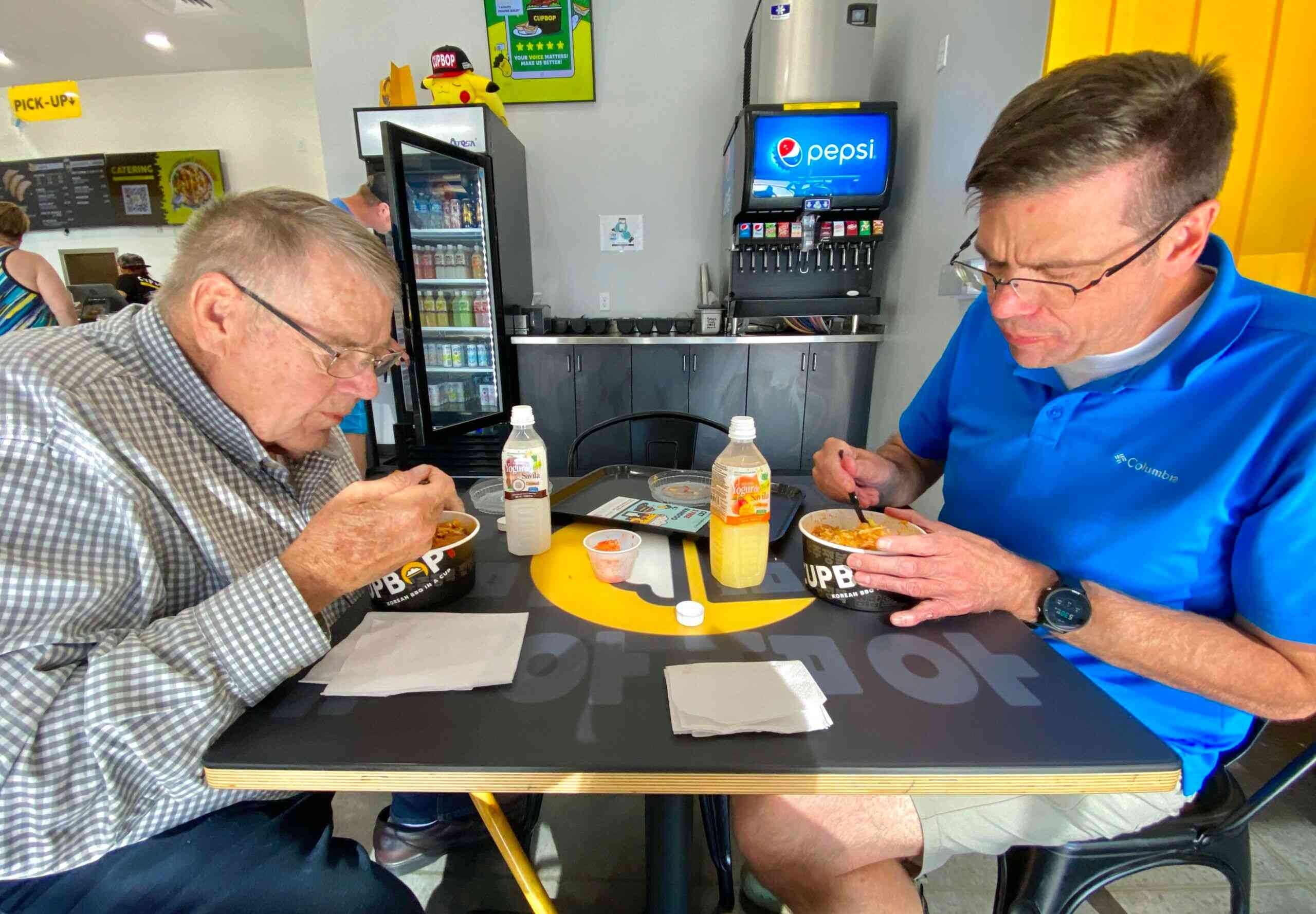 Grandpa Manwaring stayed with us in our AirB&B, and the first night we ate dinner at one of Merinda's favorite restaurant's in Rexburg, Cupbop.