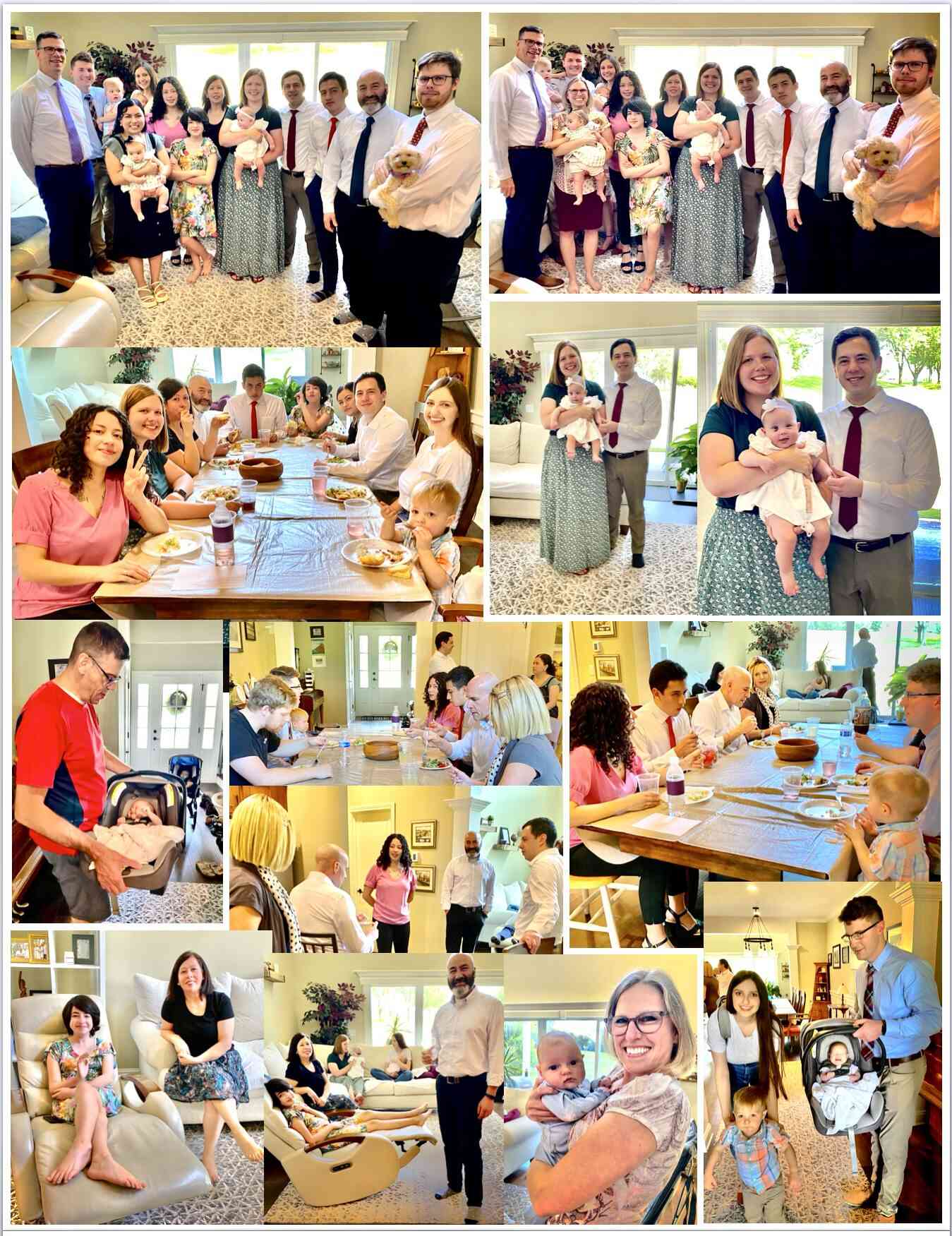 On the Sunday Claire was blessed, we invited everyone over for lunch right after church, since Breck and Iris had at least an eight-hour drive home. We had a full house with Brad and I; Aubrey, Raul & Claire; Raul's fam which included his mother Yessenia, father Manuel, and siblings Sara, Isaias, & Laura; Breck, Iris, Camila & Mancha; long time friend's Mark & Bridgette; and Molly, Wesley, Mason & Norah (just a month old). Molly was Aubrey's mission companion so she got to know Raul's family quite well. After their missions, Aubrey introduced Molly to Wesley, and well, the rest is history!