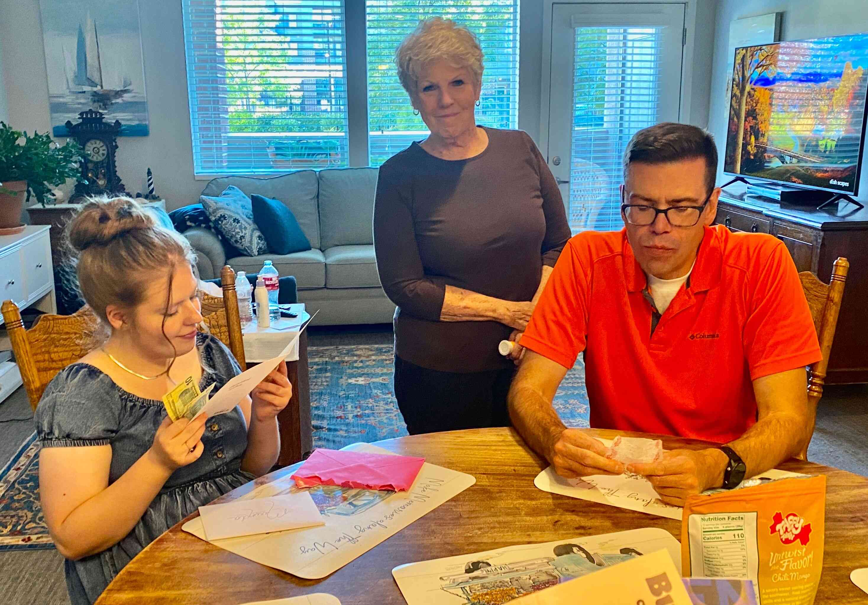 Celebrating Merinda's birthday with her, eating her fav meal and opening birthday cards and gifts at Grandmas'