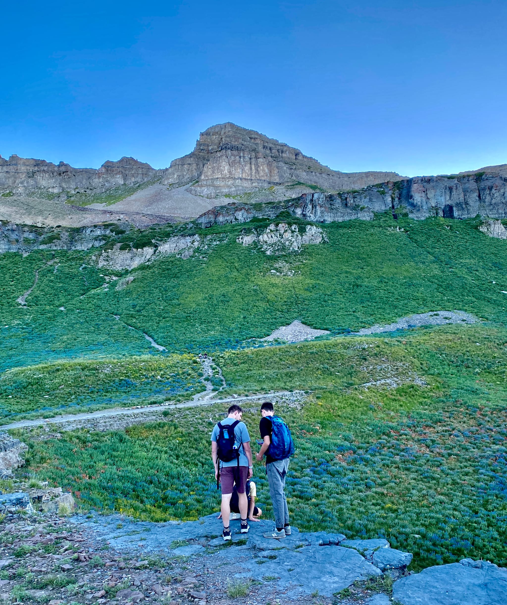 We chose to hike the Timpooneke Trail since it was the easiest, but the total distance up and back was still about 14 miles. We left a little after 4:00 from Timpooneke Campground trailhead up American Fork Canyon. Everything fell beautifully into place—minimal crowds, no parking issues, and perfect weather since we were hiking on the shady side of the mountain. The Aspens, Pines, water falls, mountain meadows, and majestic views were just as stunning as I remembered. The other great part was our awesome group of hikers: Sasha and her son Darek, my brother-in-law Blake, Matt and his wife Brei, their kids Tage, Tyson, and Brock, as well as their daughter Morgan and her husband Sterling. Morgan and Sterling started after us, but passed us when we took a short detour to the falls. Everyone had a good time and it truly couldn’t have been a better hike!