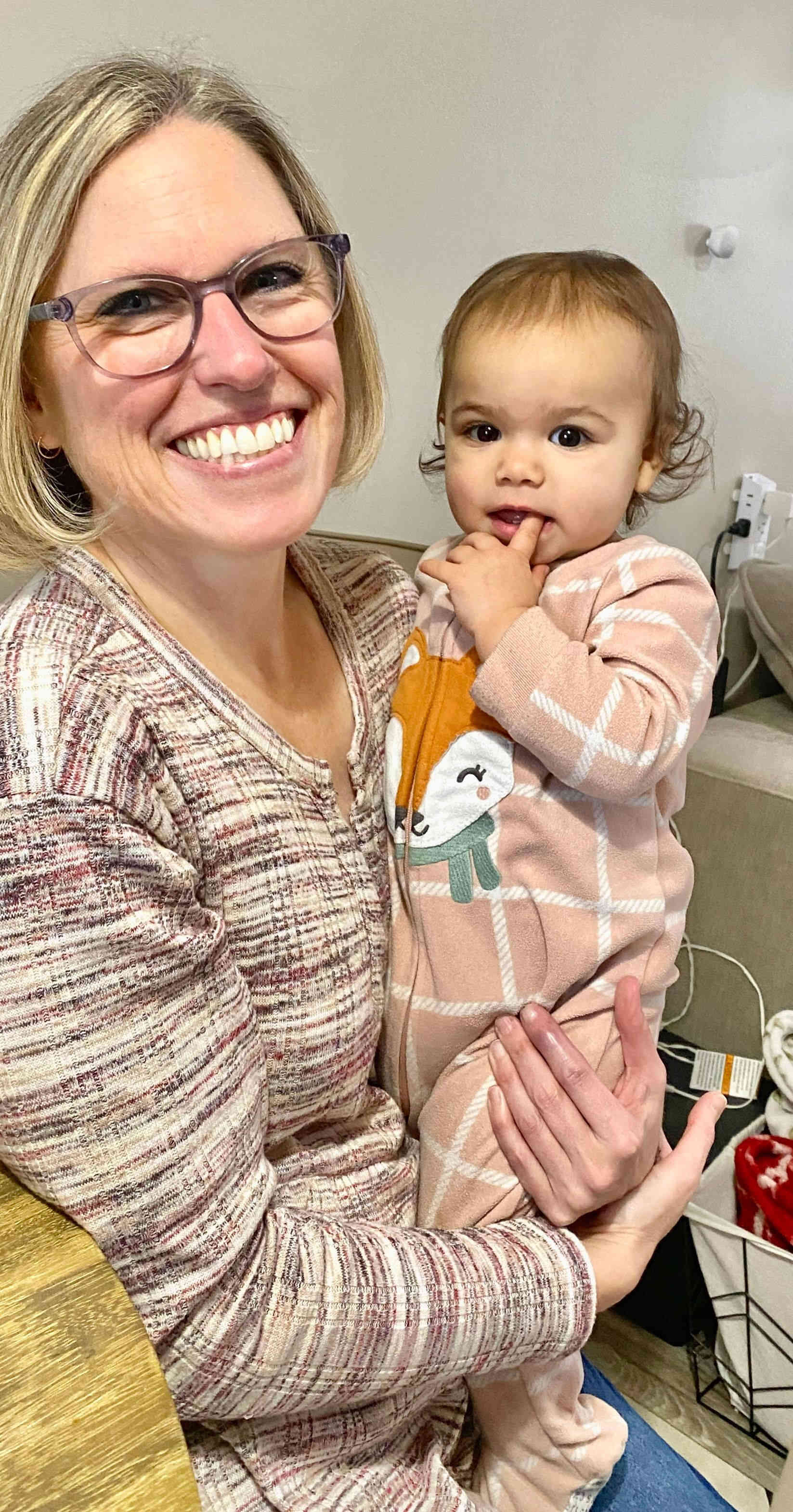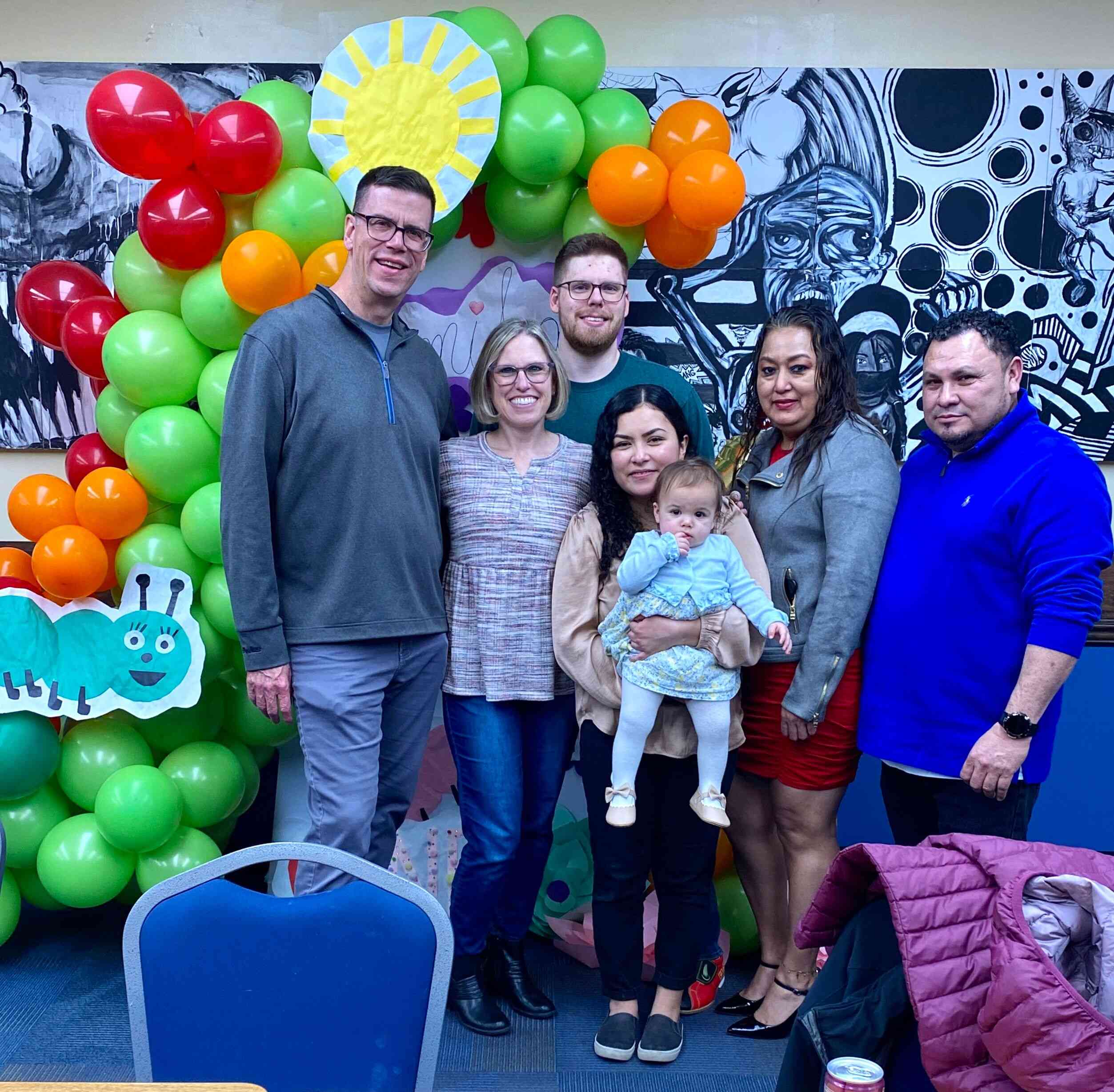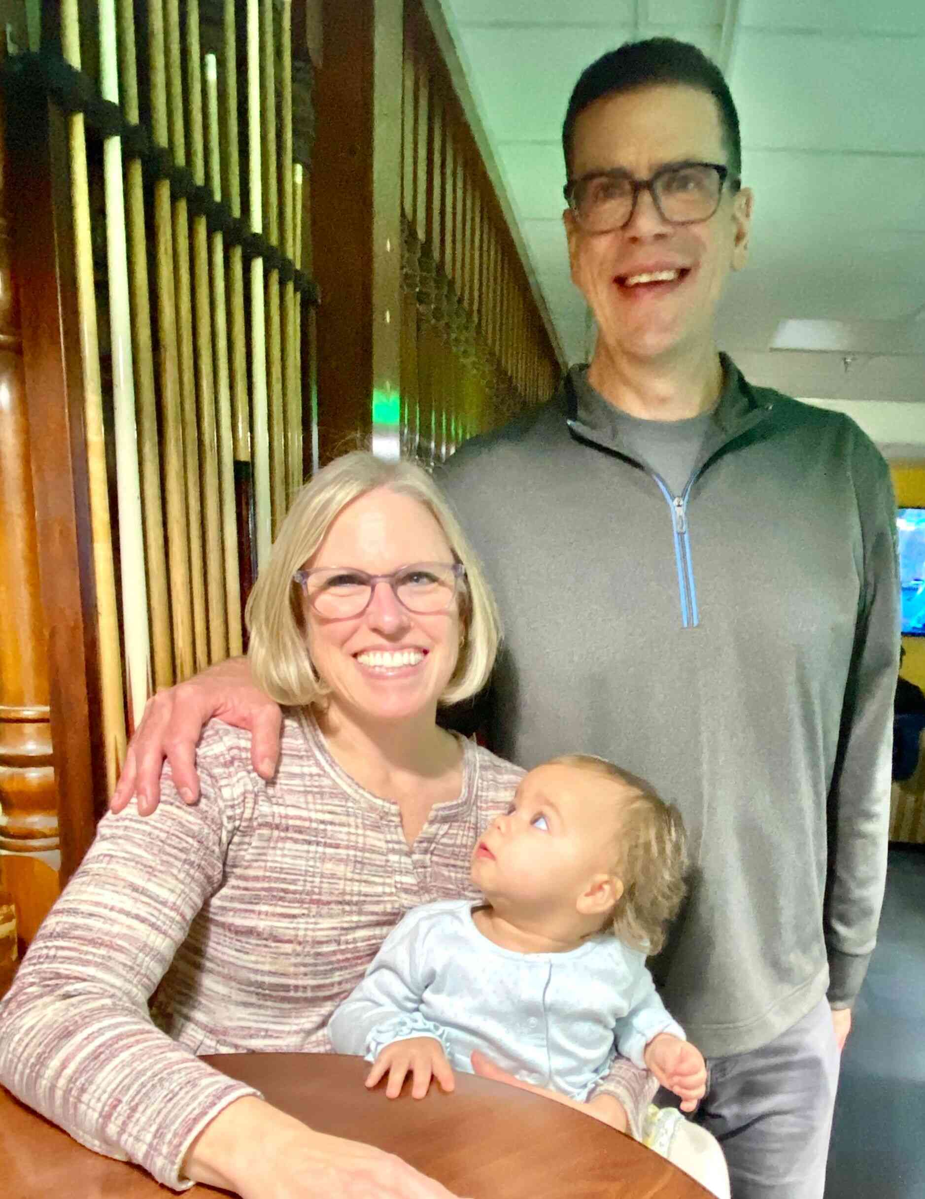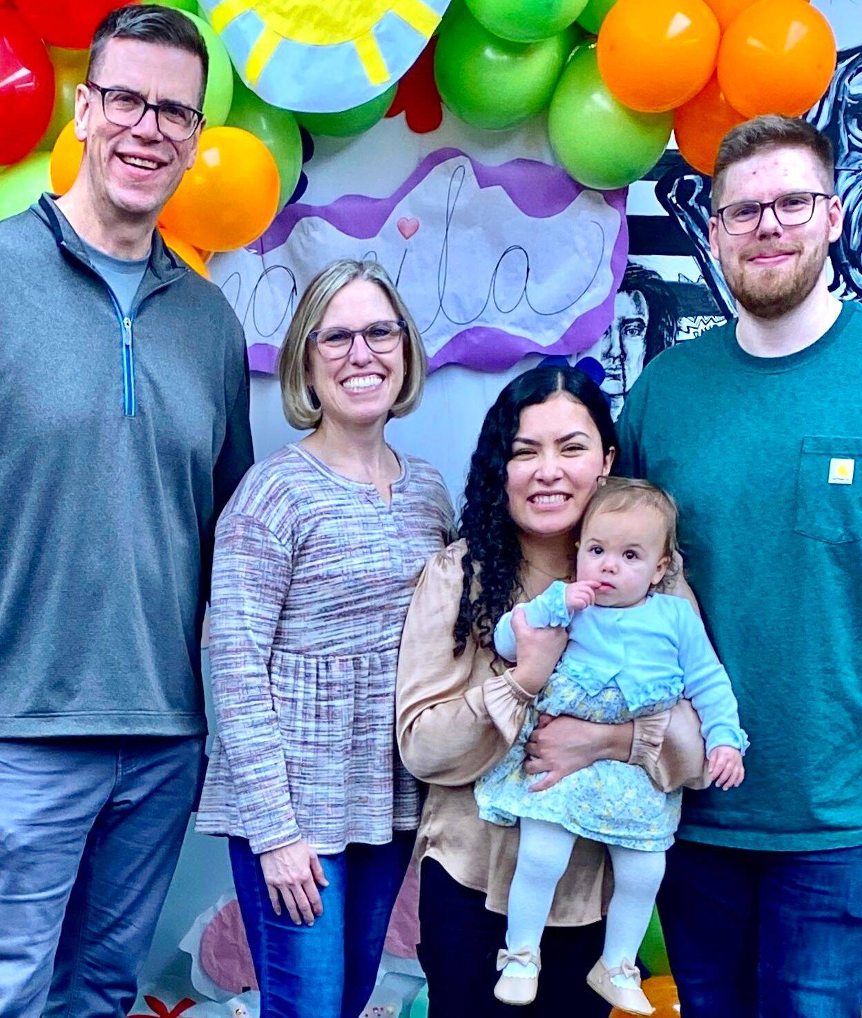 Brad and I took a short trip to West Virginia to visit Breck & Iris and to celebrate our granddaughter Camila’s first birthday. The evening before we enjoyed eating out at their fav Mexican restaurant, watching Camila open her gifts from us (a sweater where I needle-pointed flowers in the shape of a C) and Aubrey & Raul (books from Chile that she absolutely loved!), and lounging on their comfy couch while viewing a show on their projector.