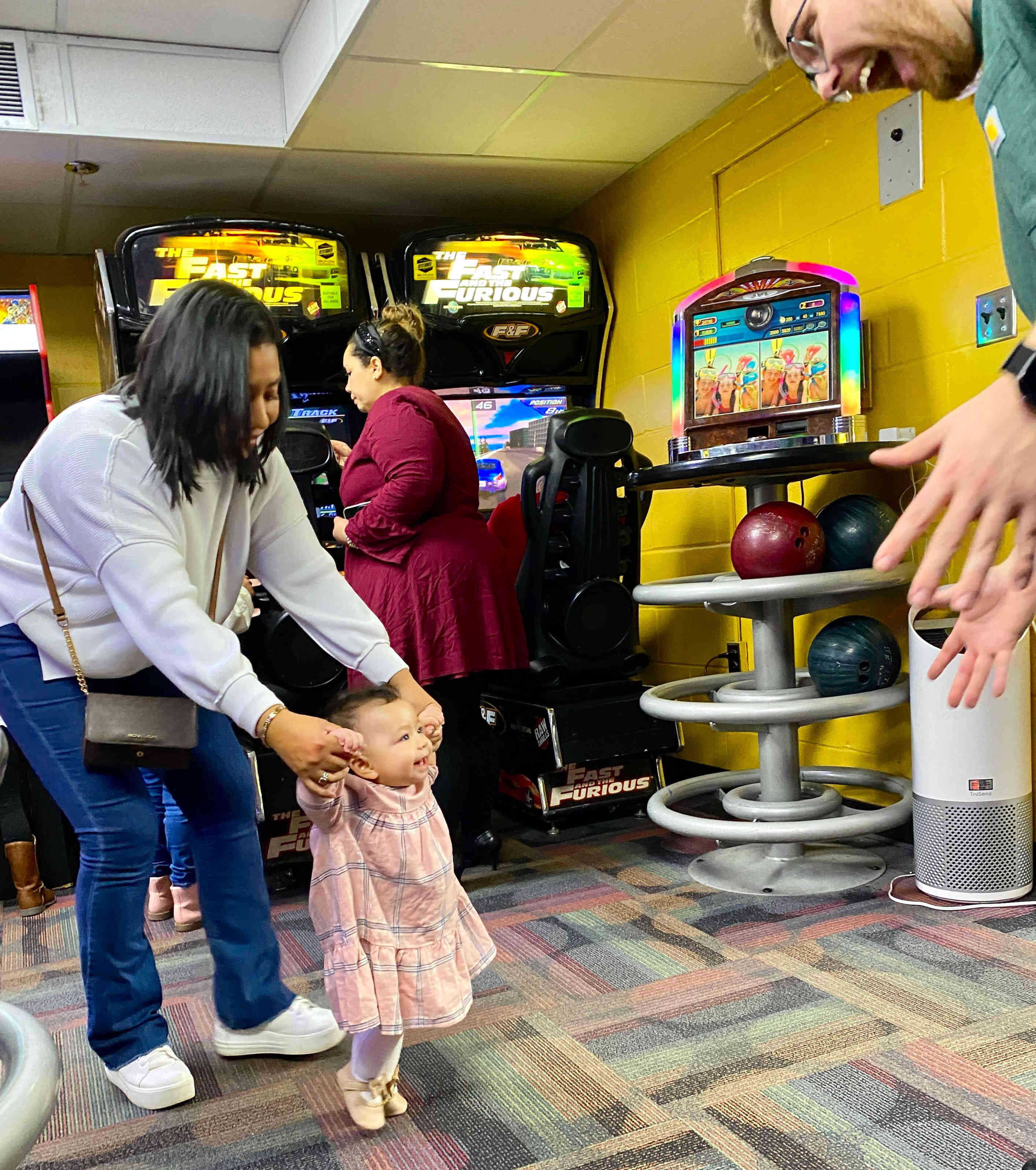 For the big party, Breck & Iris reserved a college recreation center in Shepherdstown, WV, which was perfect for hosting about seventy family members (Iris has a large extended family) and friends. The venue had everything—dining space, pool tables, an arcade, and even bowling lanes. They rented it for four hours, but unfortunately, Brad and I had to leave an hour early to avoid the snowstorm that was heading for the entire Northeast, including Kentucky. We drove straight through, getting home around 3 a.m. Thankfully, we lucked out and only hit fog and sleet in the mountain passes. Sadly, Breck’s friend Wade and his wife weren’t as lucky. The next morning, they had to drive through heavy snow and icy roads.