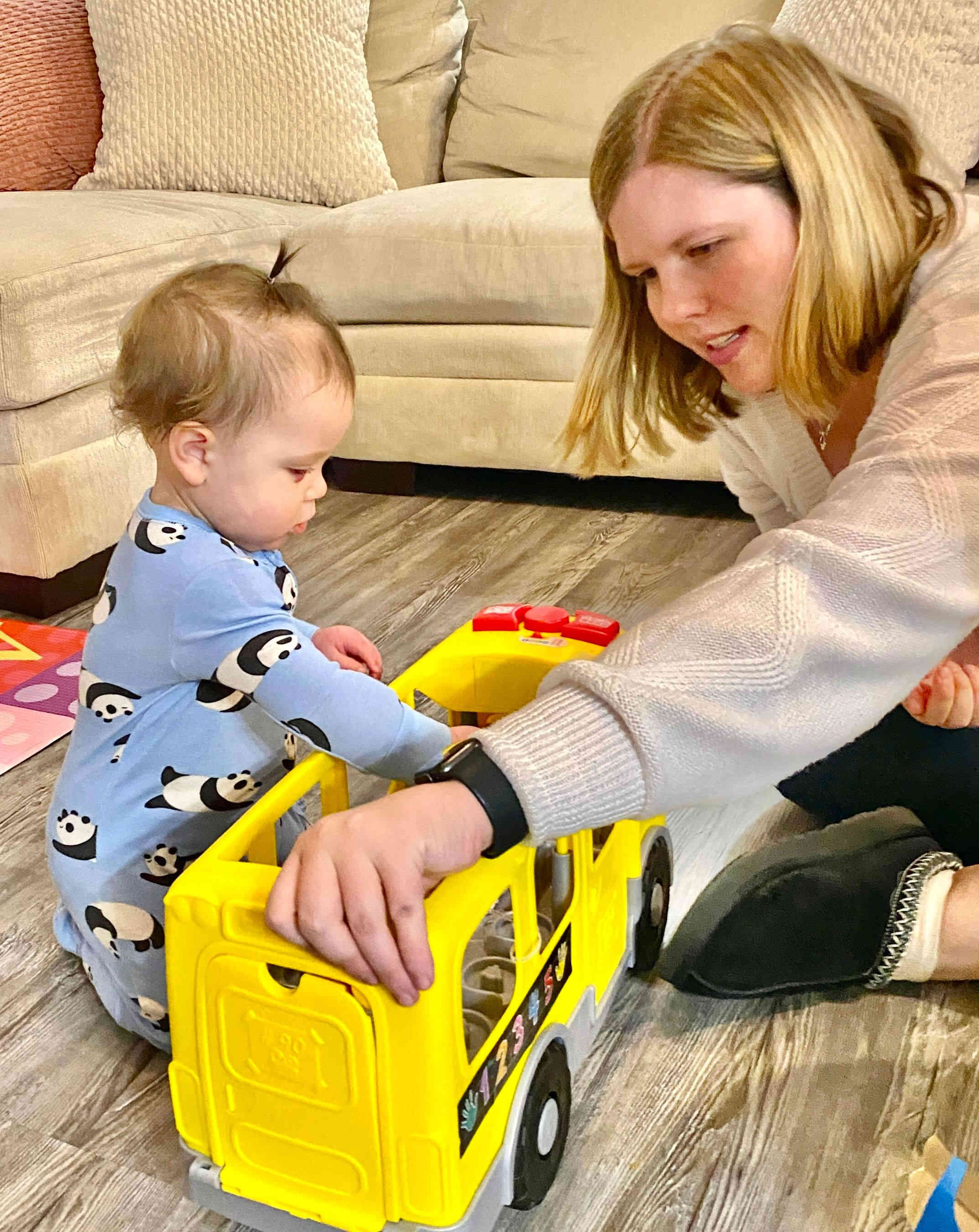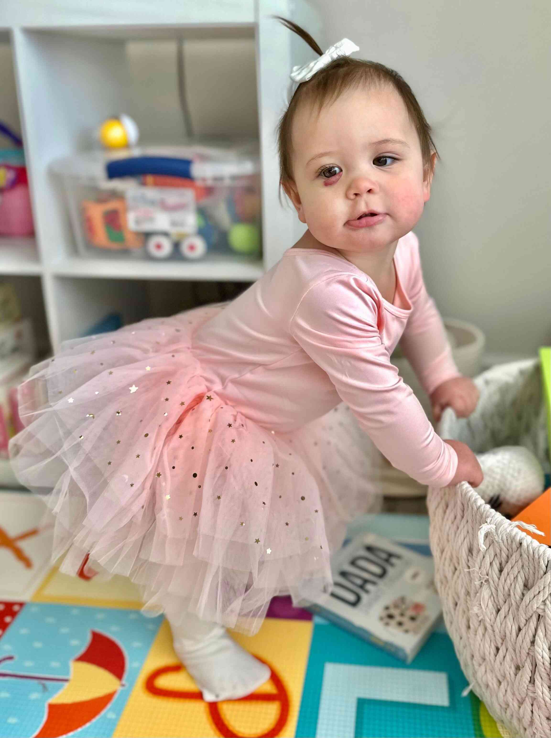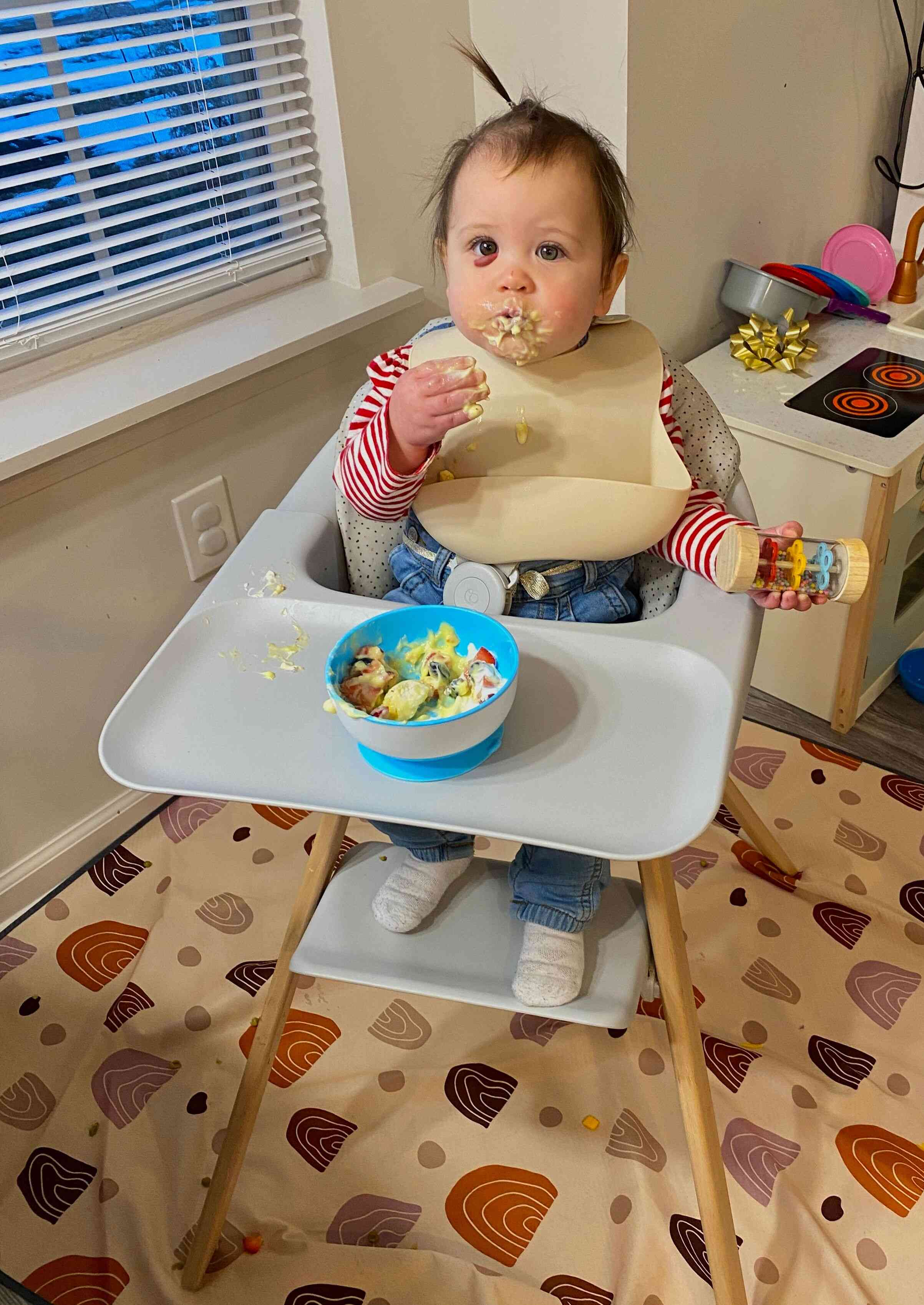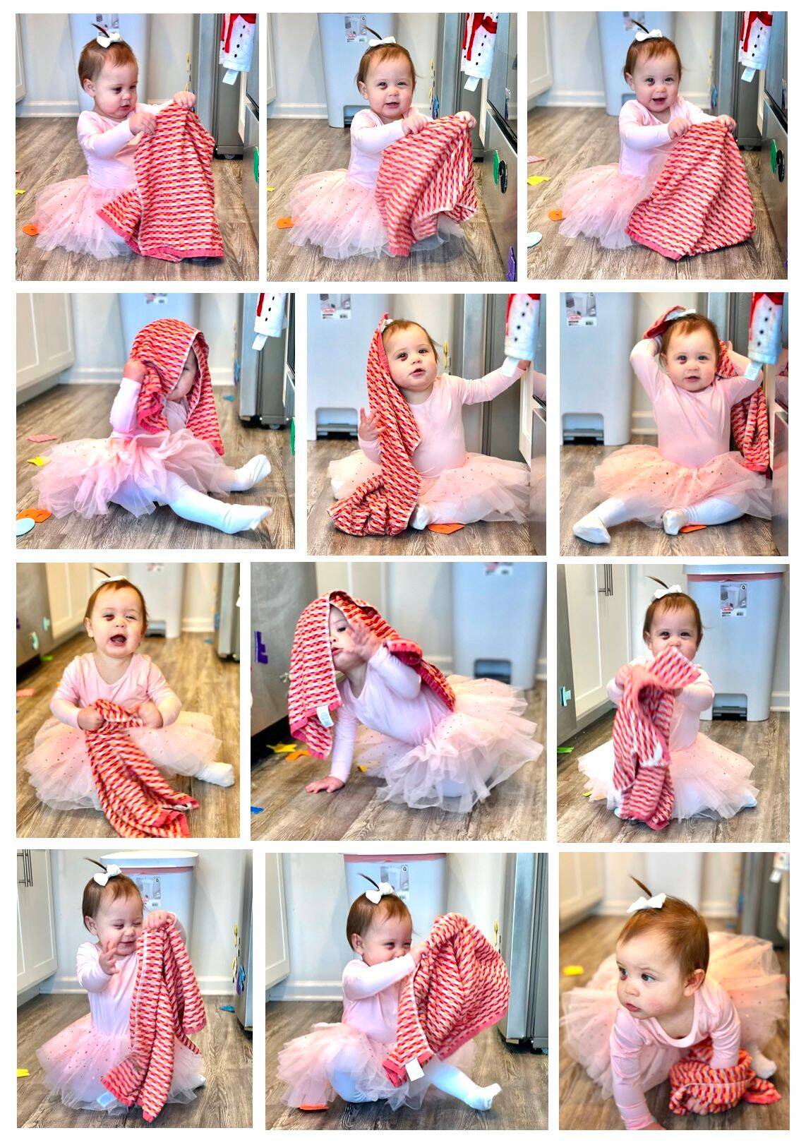 Later that day, Claire got a hold of the kitchen towel that was hanging on the oven, and just had a ball with it! Who knew a kitchen towel could be so entertaining?!