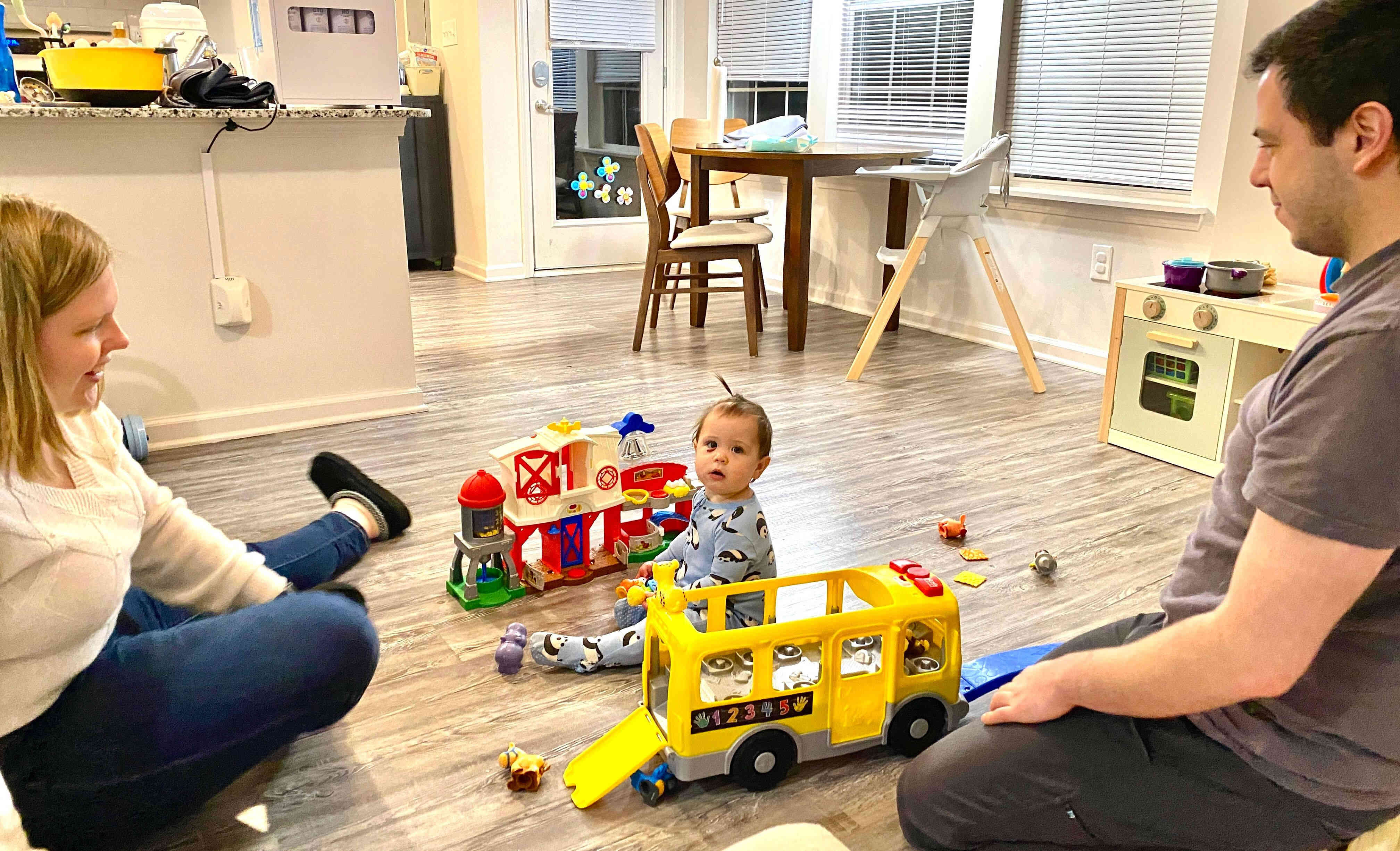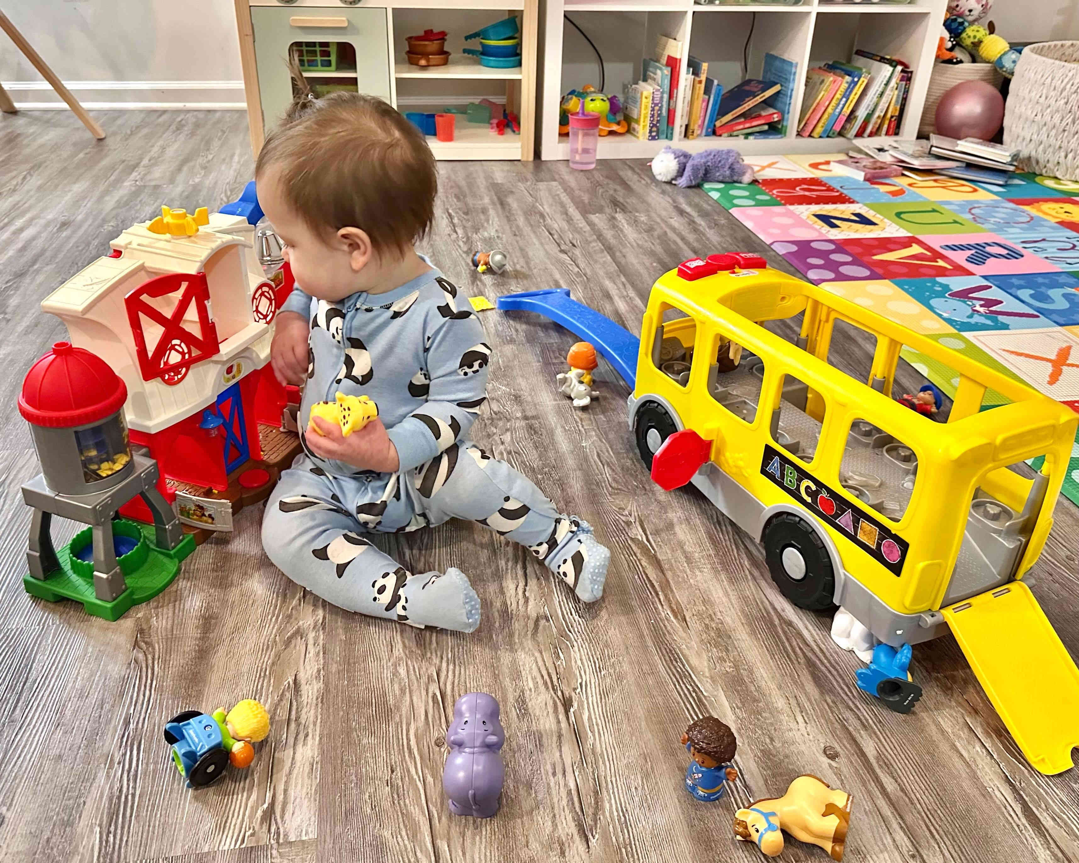 In additon to her new kitchen, she got a farm set and school bus with all interchangeable animals and people.