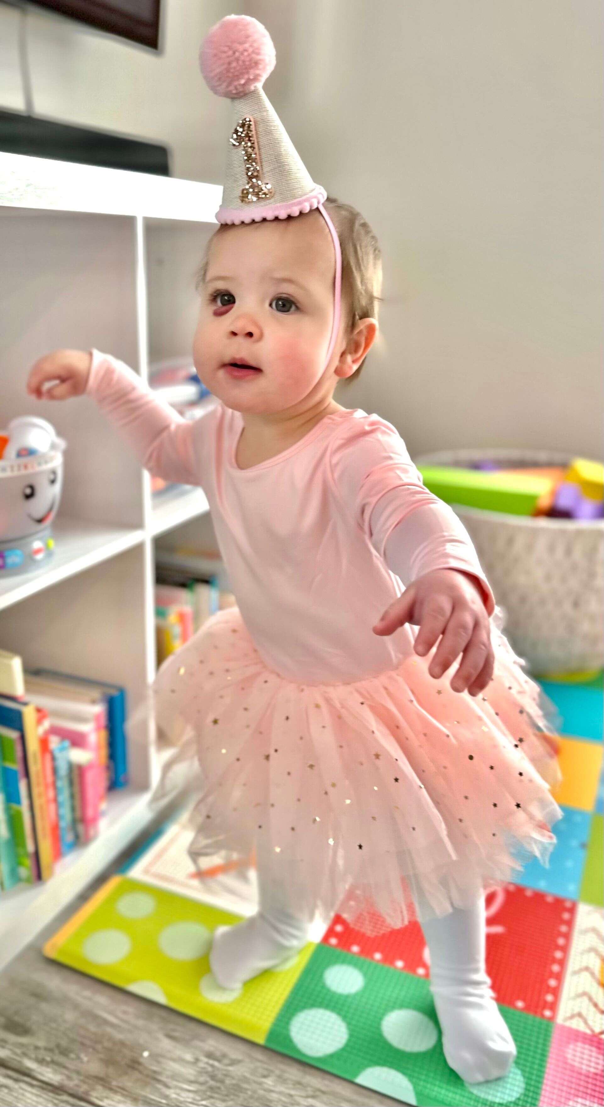 After getting all washed up and her jammies on, she had enough sugar on board to enjoy the gift-opening part of her birthday😅