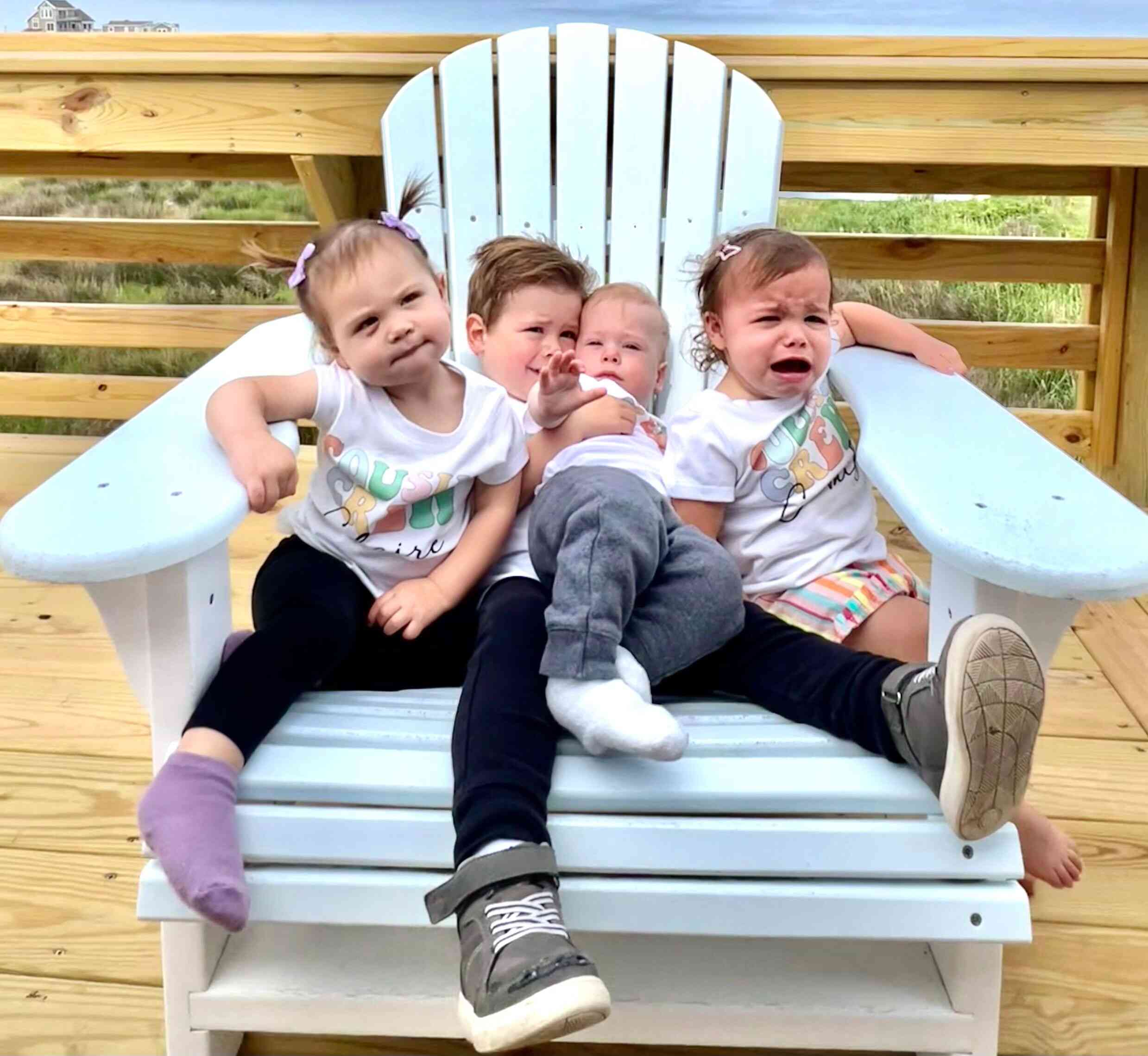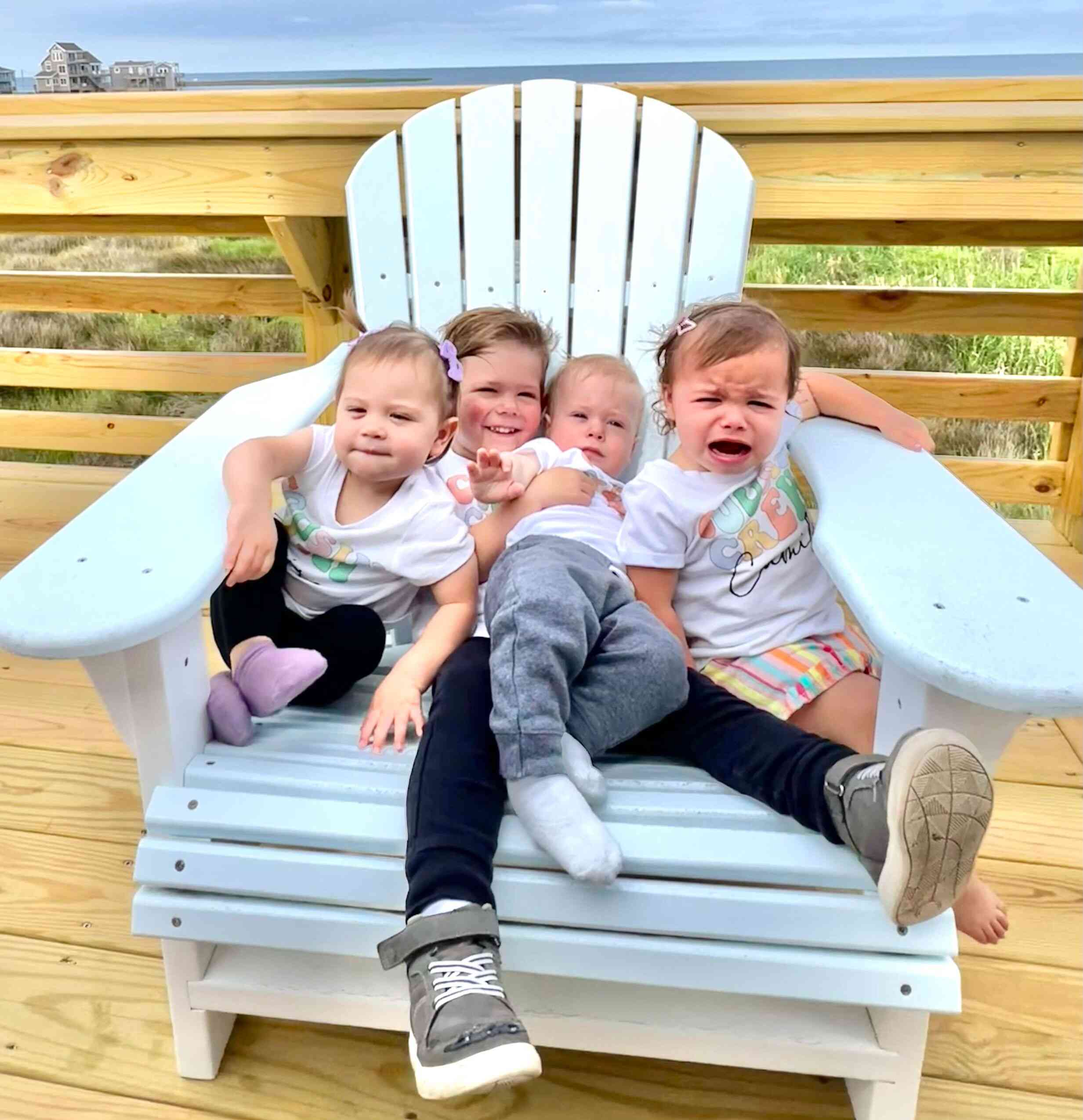 We wanted to get a picture with all the grandkids together, in their adorable shirts that Iris made for each of them, but maybe that was a bridge too far...