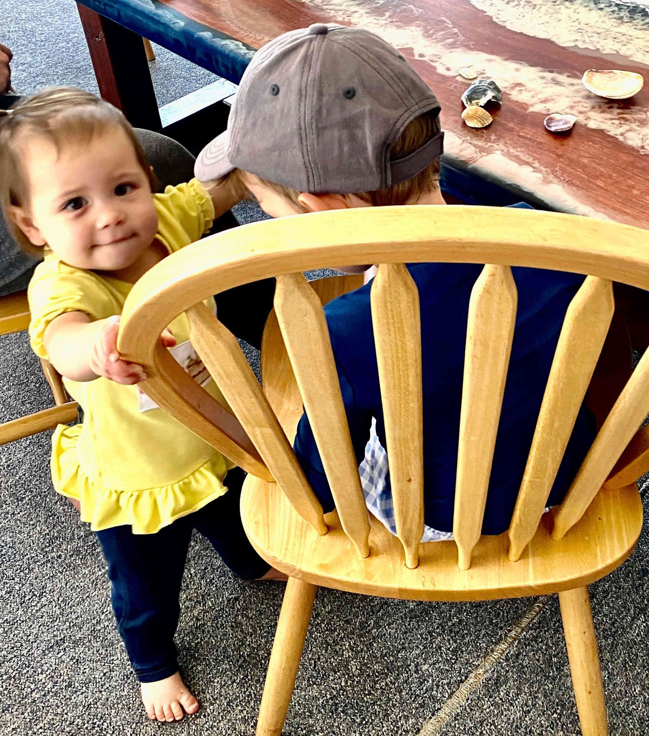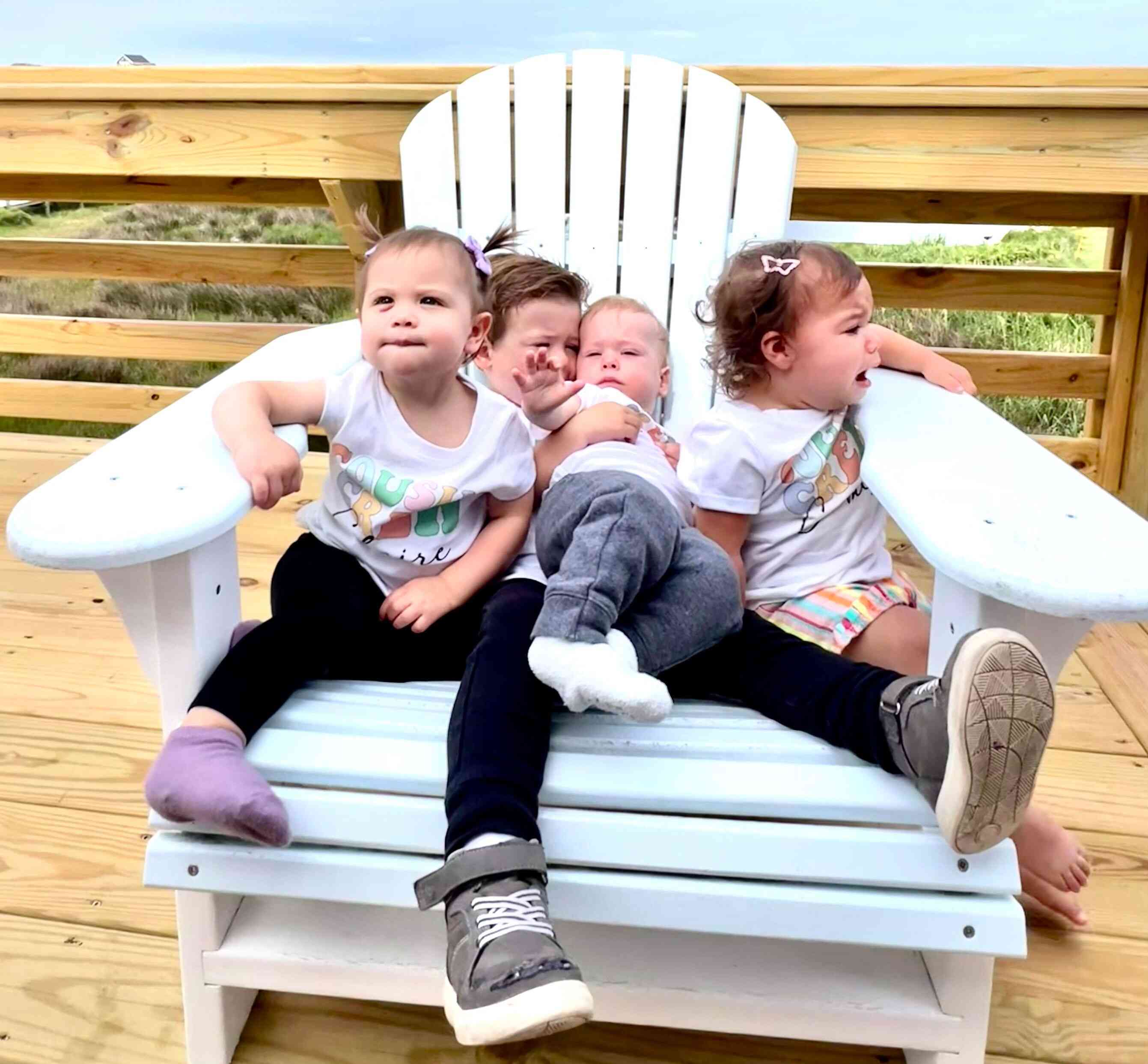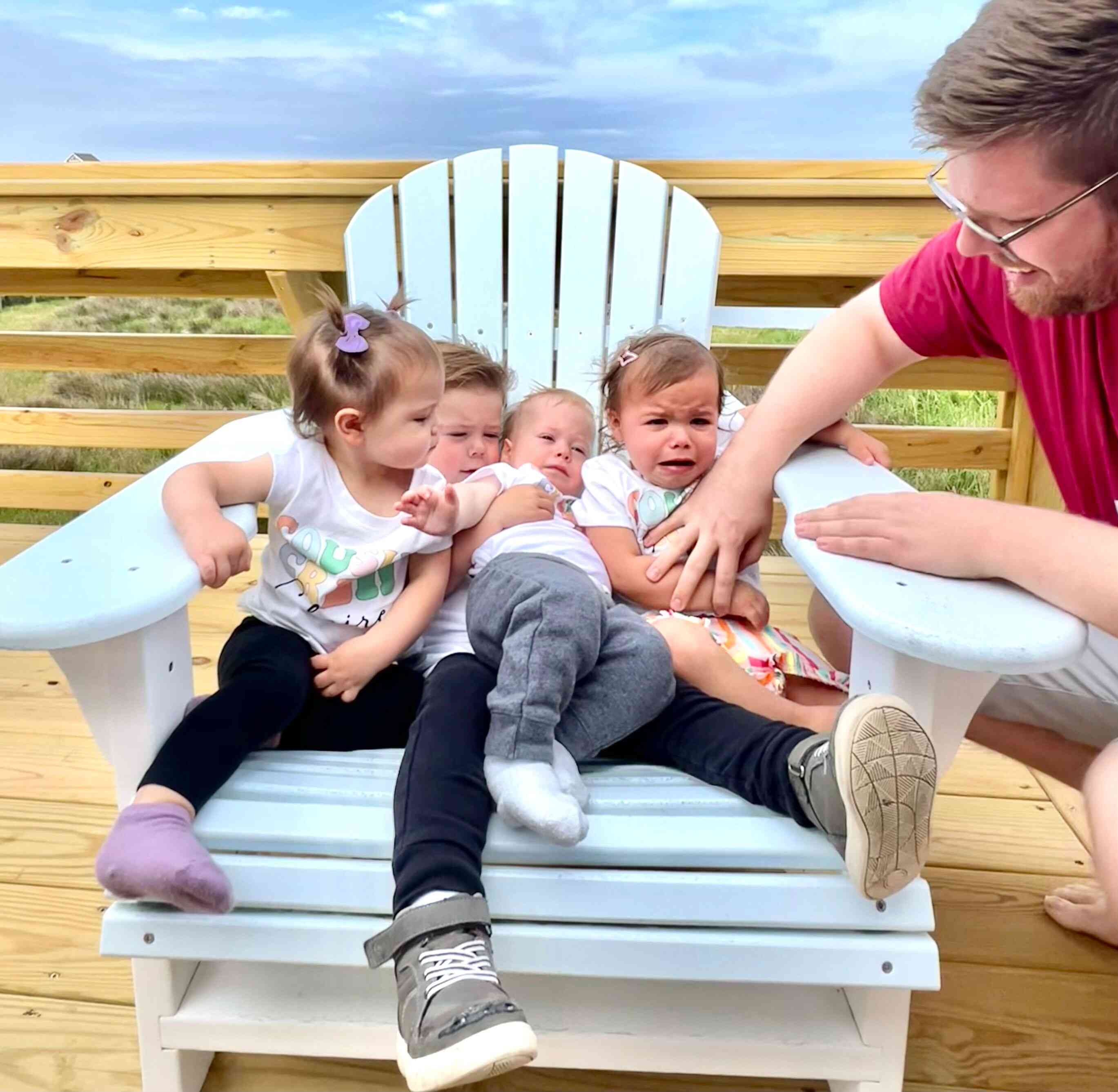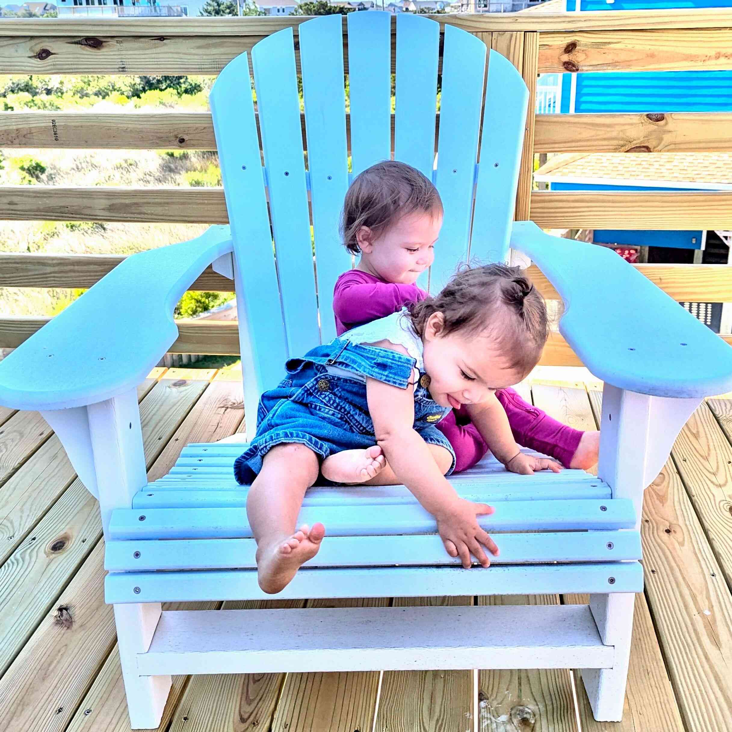 Sunday Brad and I got reacquainted with Fin and Gus (who I hadn't held since he was a newborn), while Camila and Claire checked out the chairs on the deck.