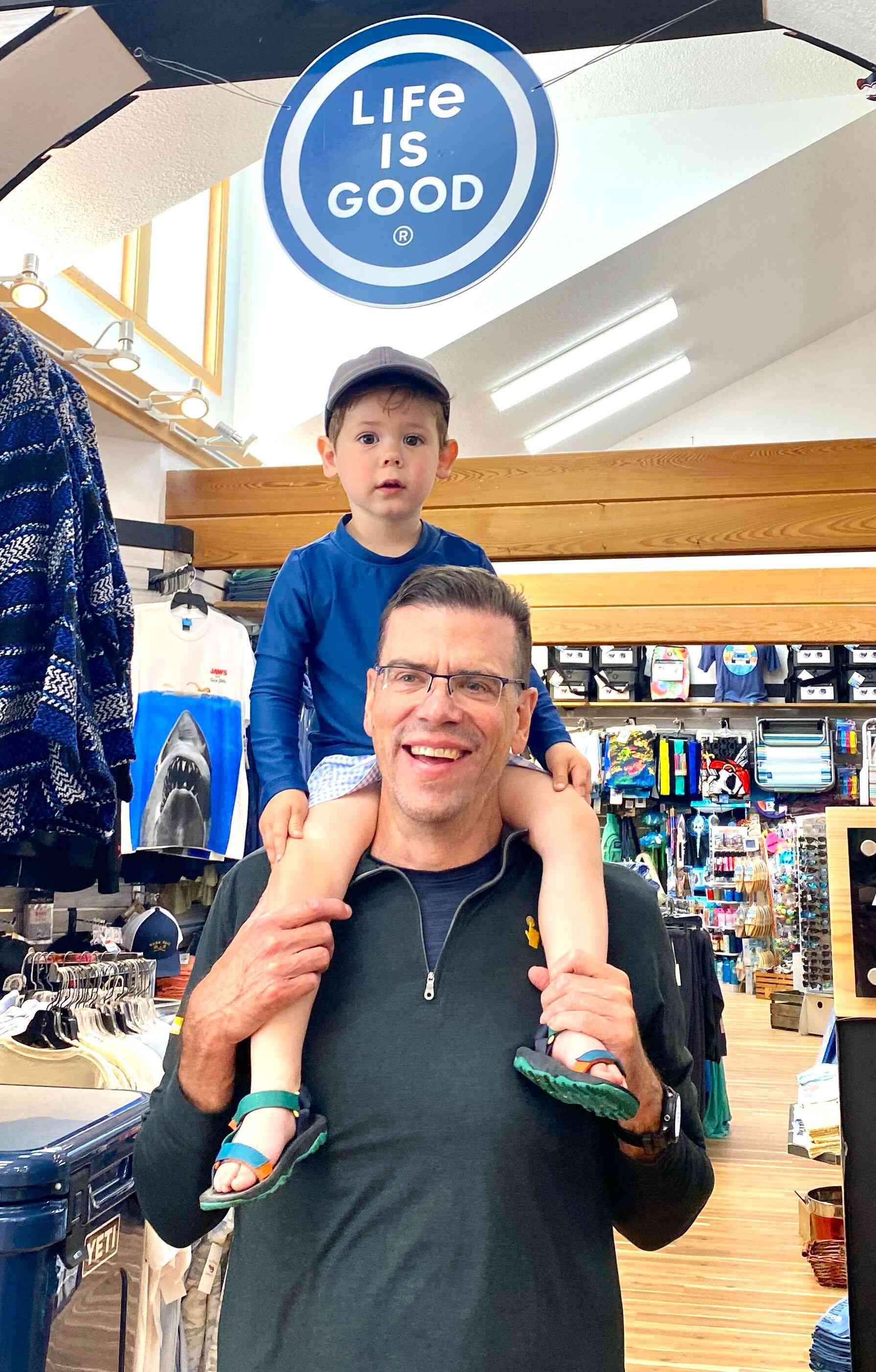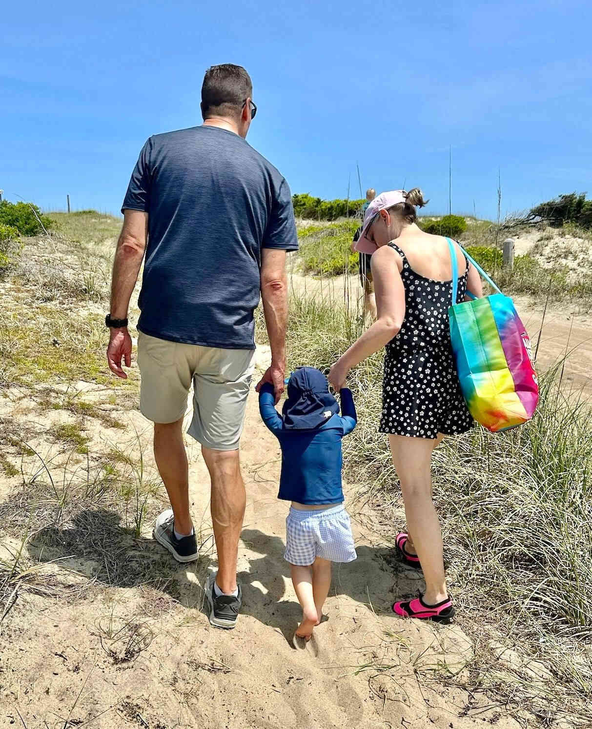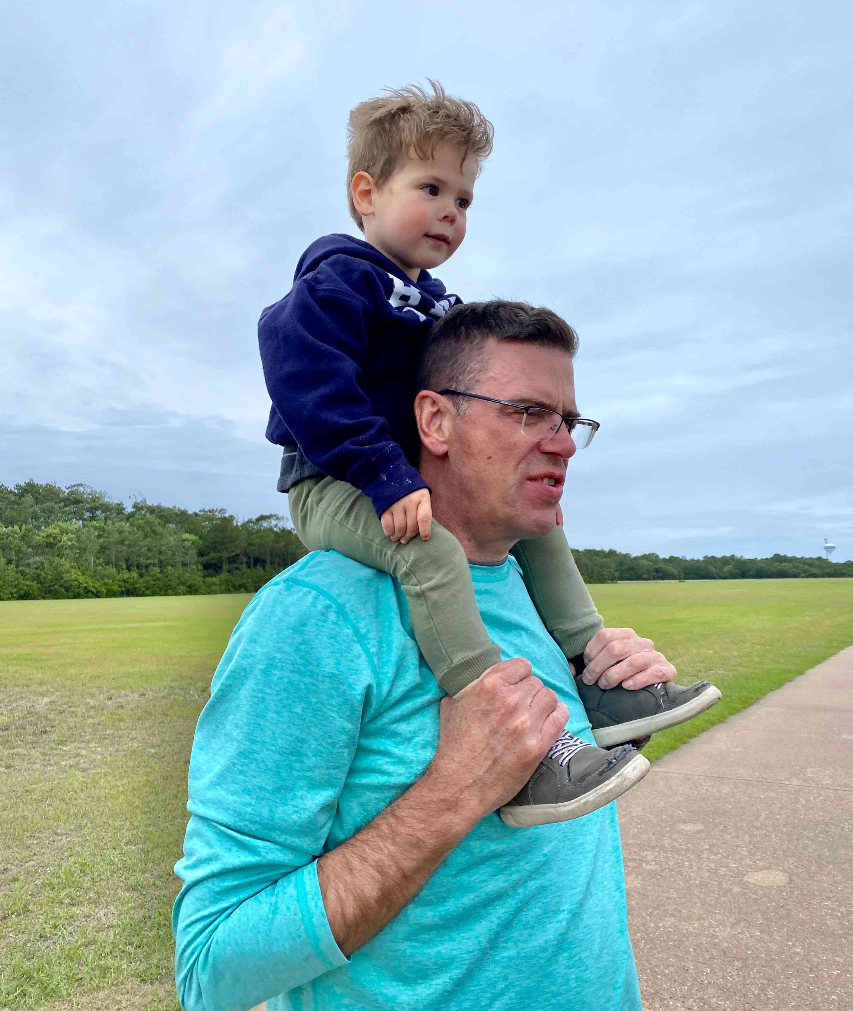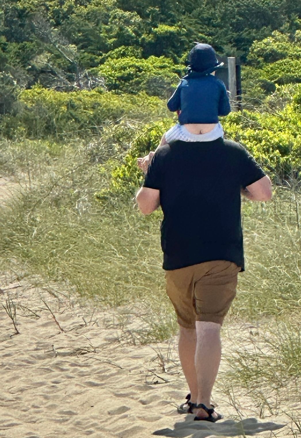 Grandpa carrying Finn on his shoulders for the long walk to the vehicles. Some of us stopped at the Outlets in Nags Head, on the way back to our AirB&B, to do a little shopping.