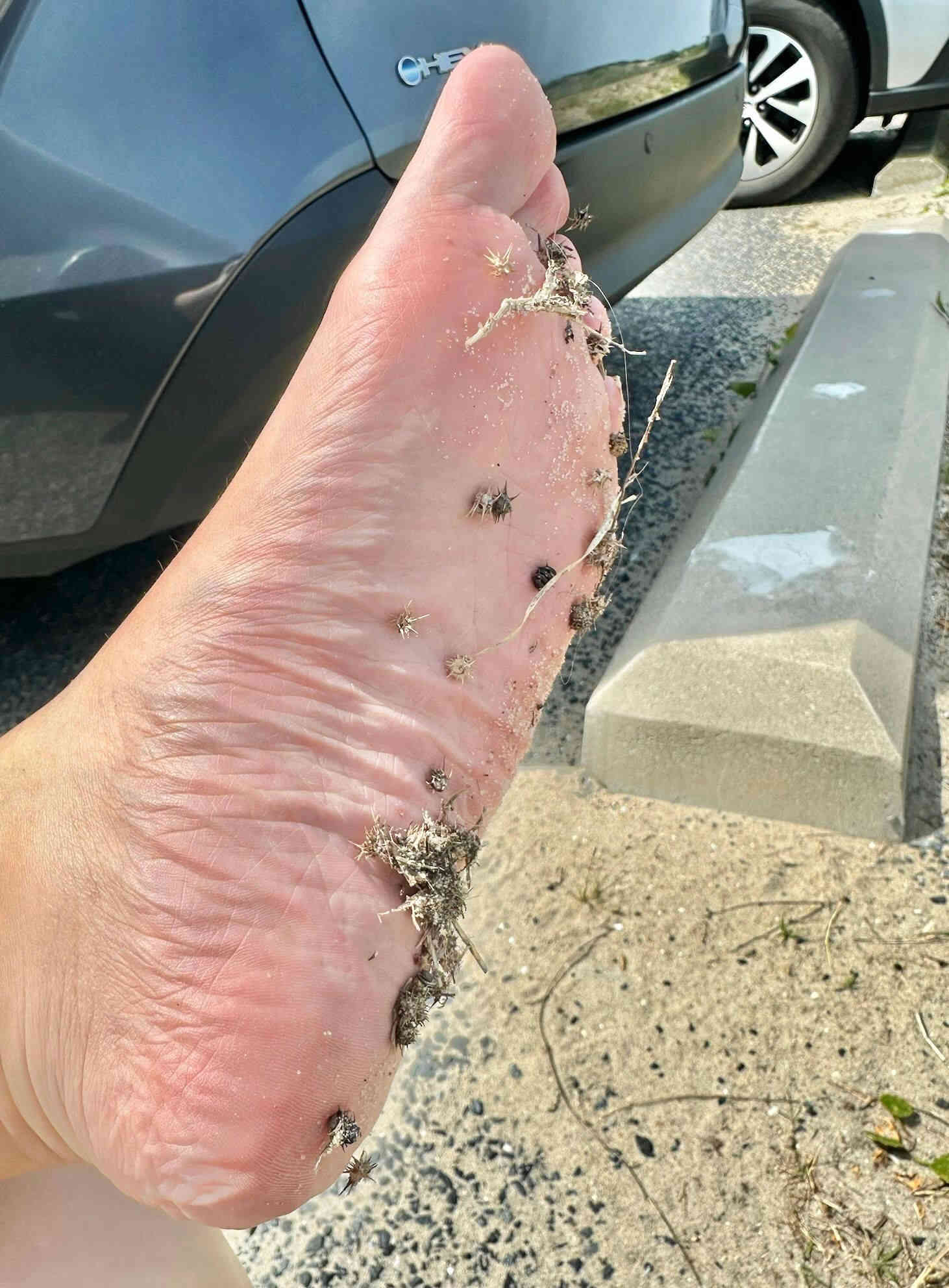 The state of Brittney's feet after walking to her car to feed Gus...although excruciating, she couldn't sit down or put down Gus down to pull out the throngs until they made it to the car. This really depicts the life of a mother!!