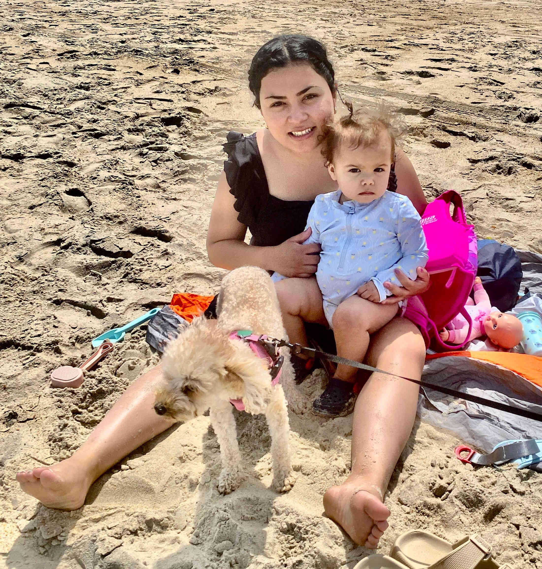 Iris, Mancha, and Camila (trying to get into the beach thing!)