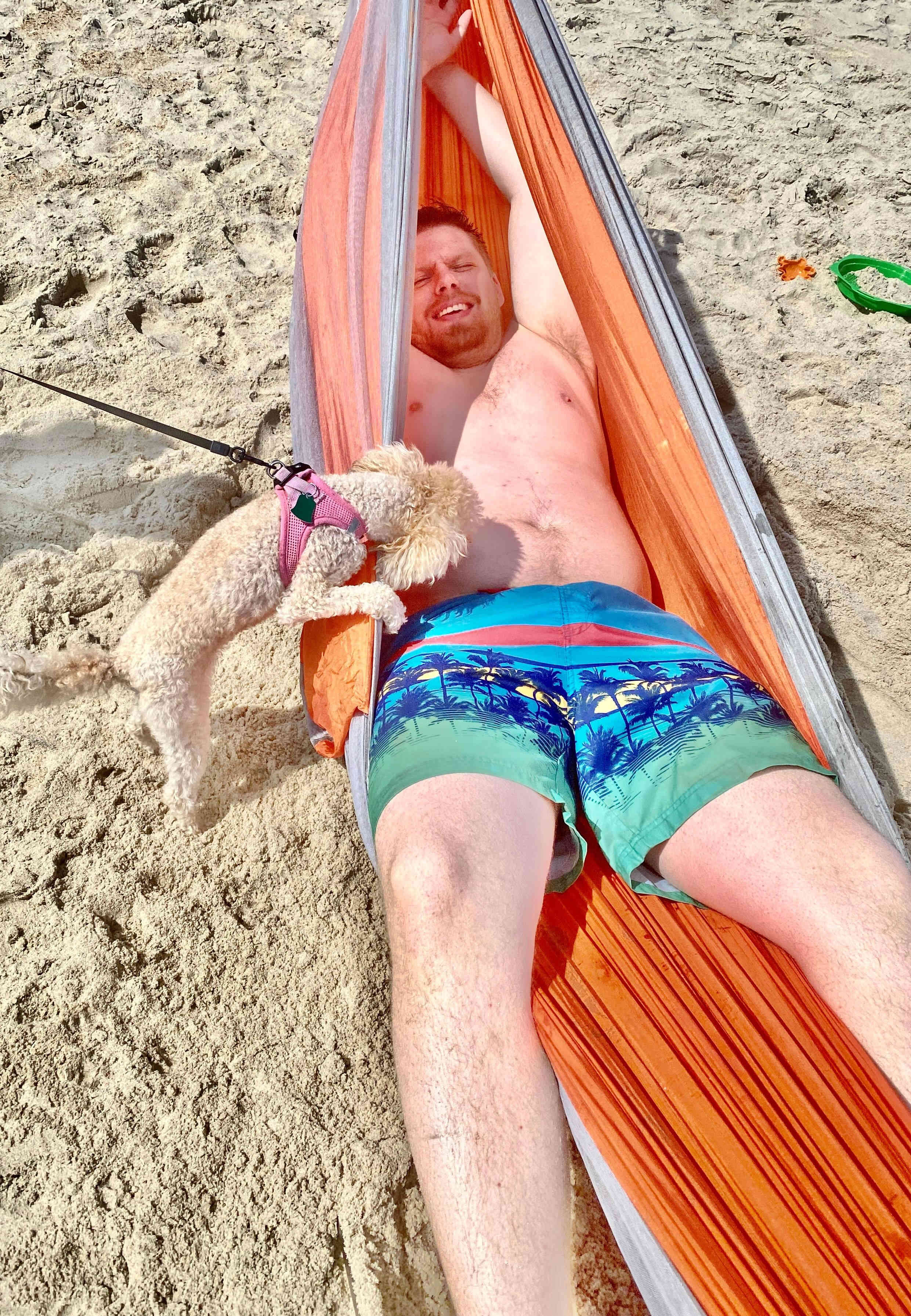 Breck putting up the hammock for his Sunday nap!