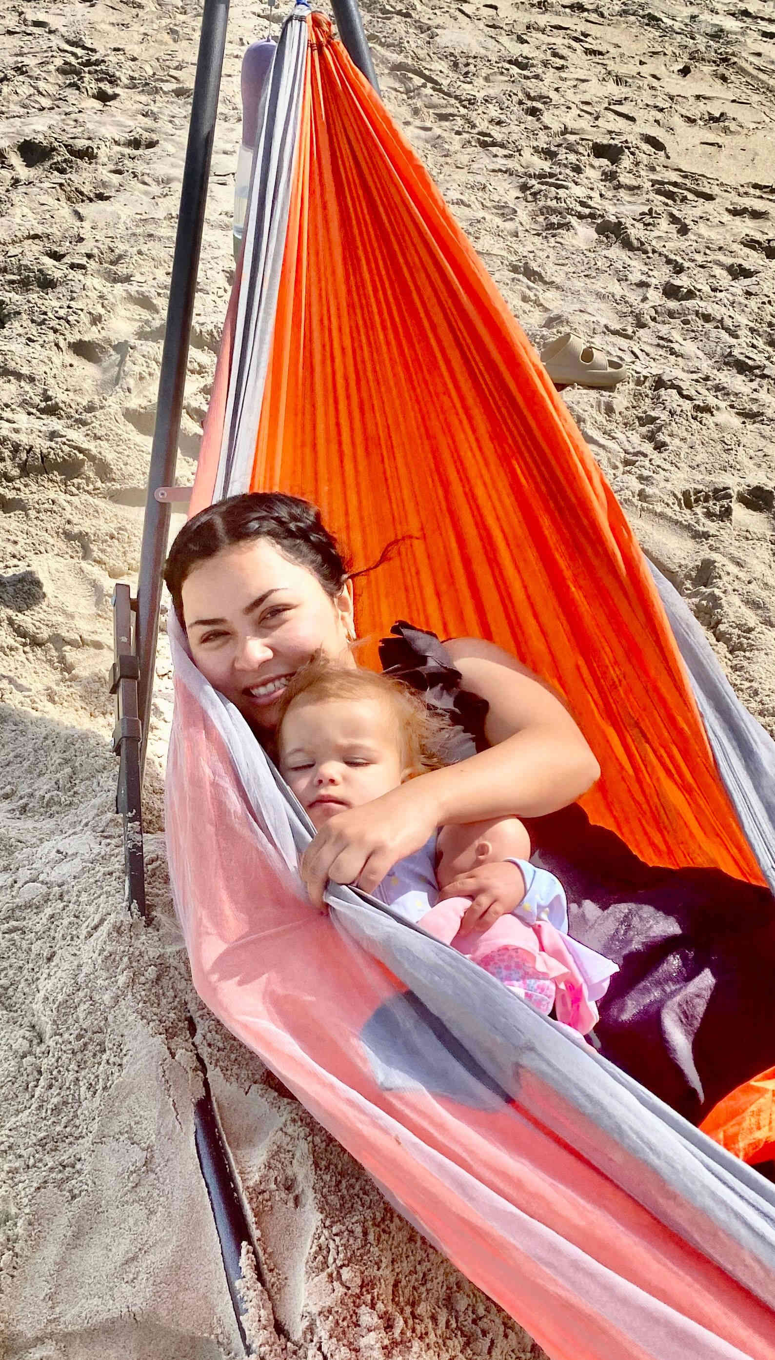 Camila finally getting the hang of this beach thing,