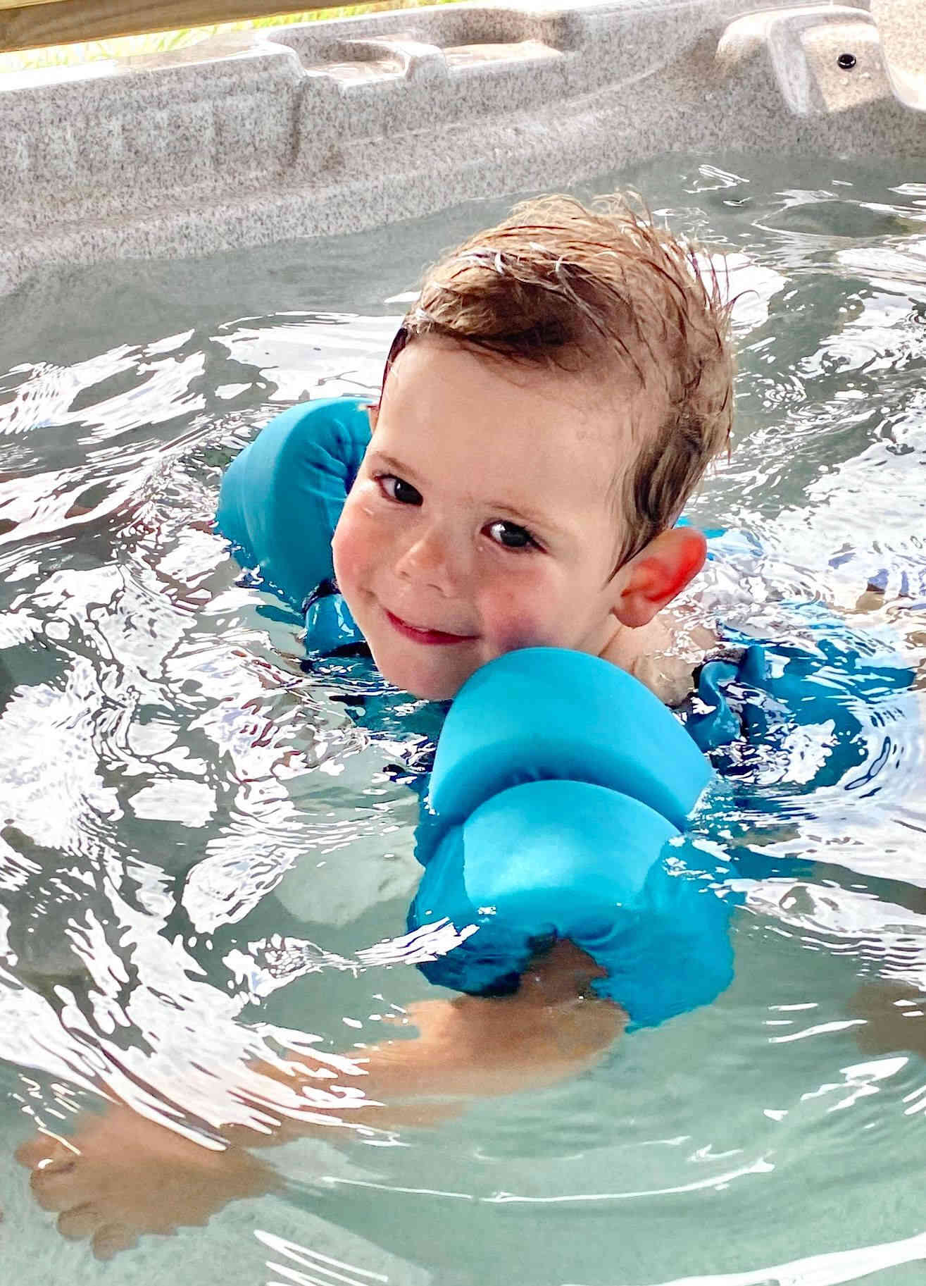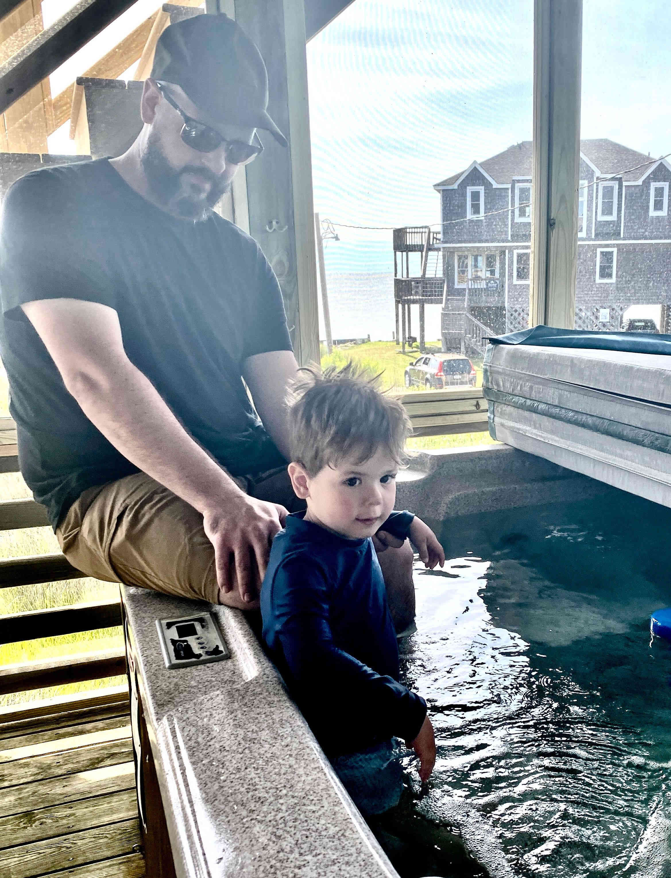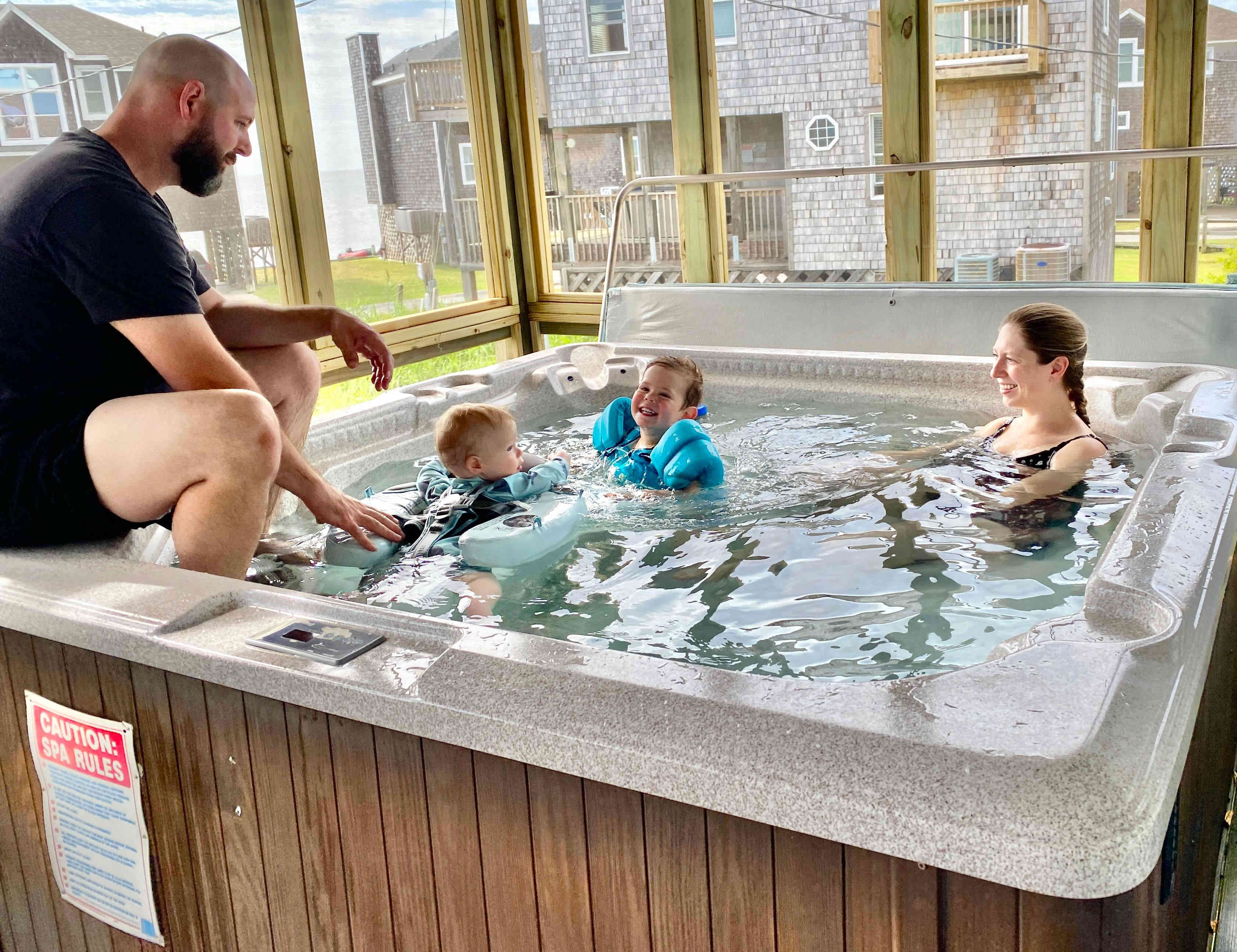 and Brittney & Sean & boys swam in the hot tub (that was cooled, and without jets) at our AirB&B.