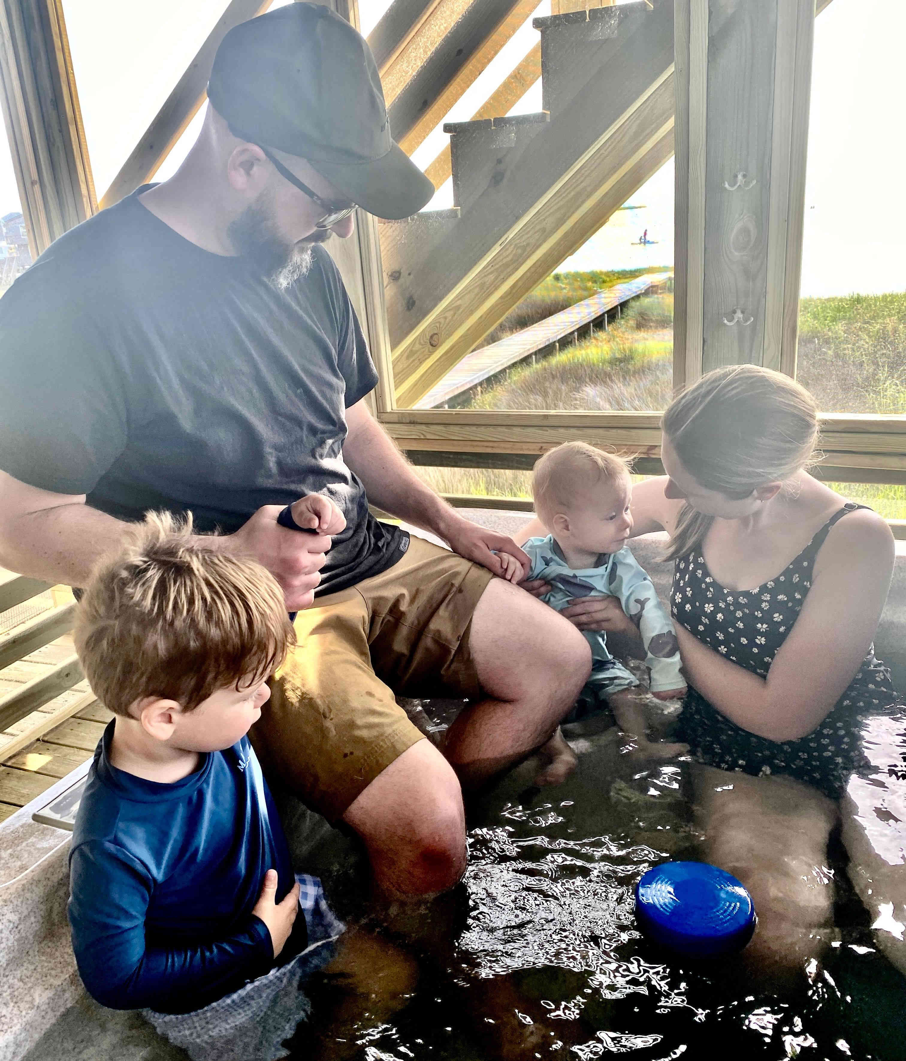Before washing up for the day, Brittney and fam, and Merinda & I, sat in the hot tub to try it out!