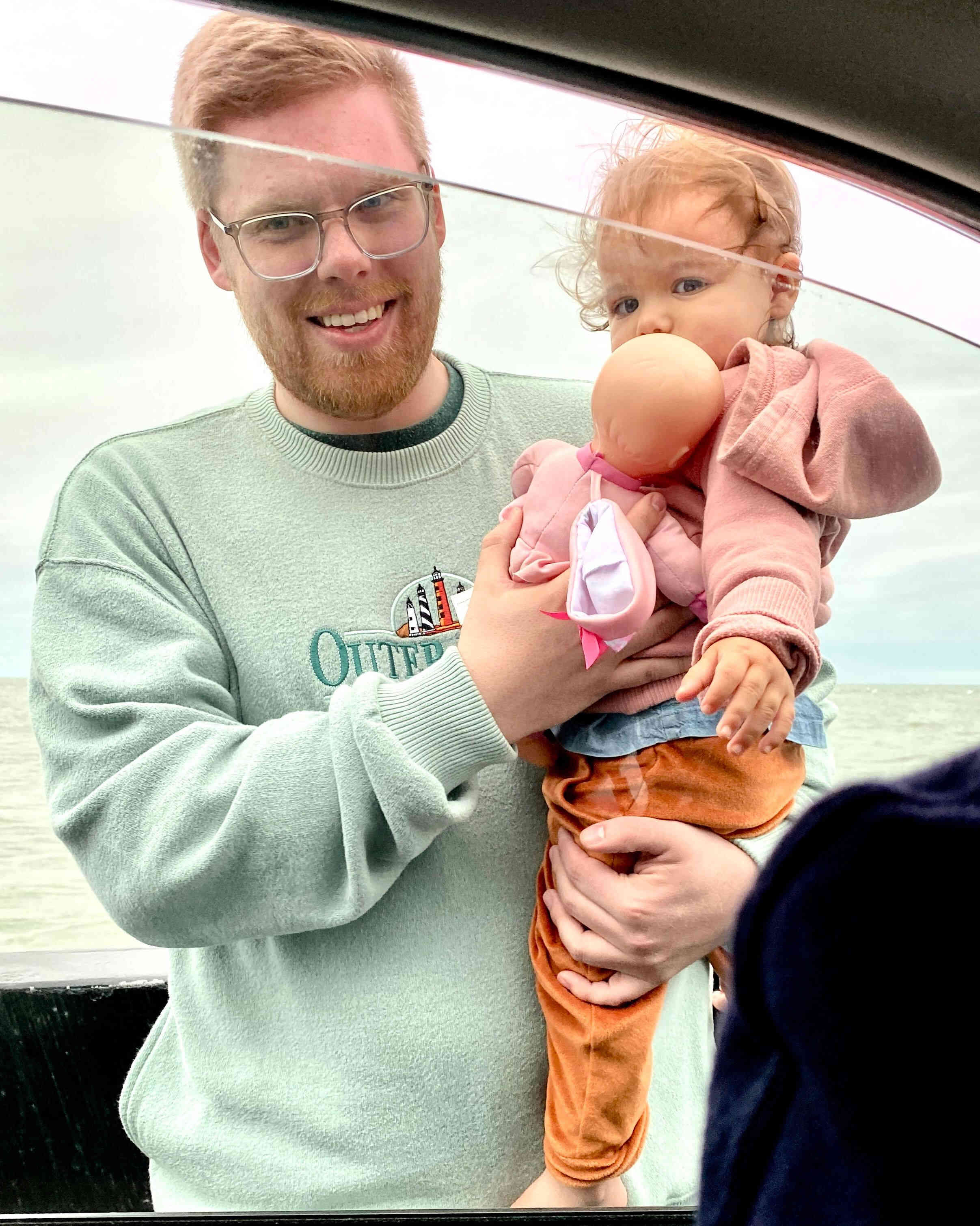 Here I am explaining to Finn what a ferry boat was since this was his first time on one.
