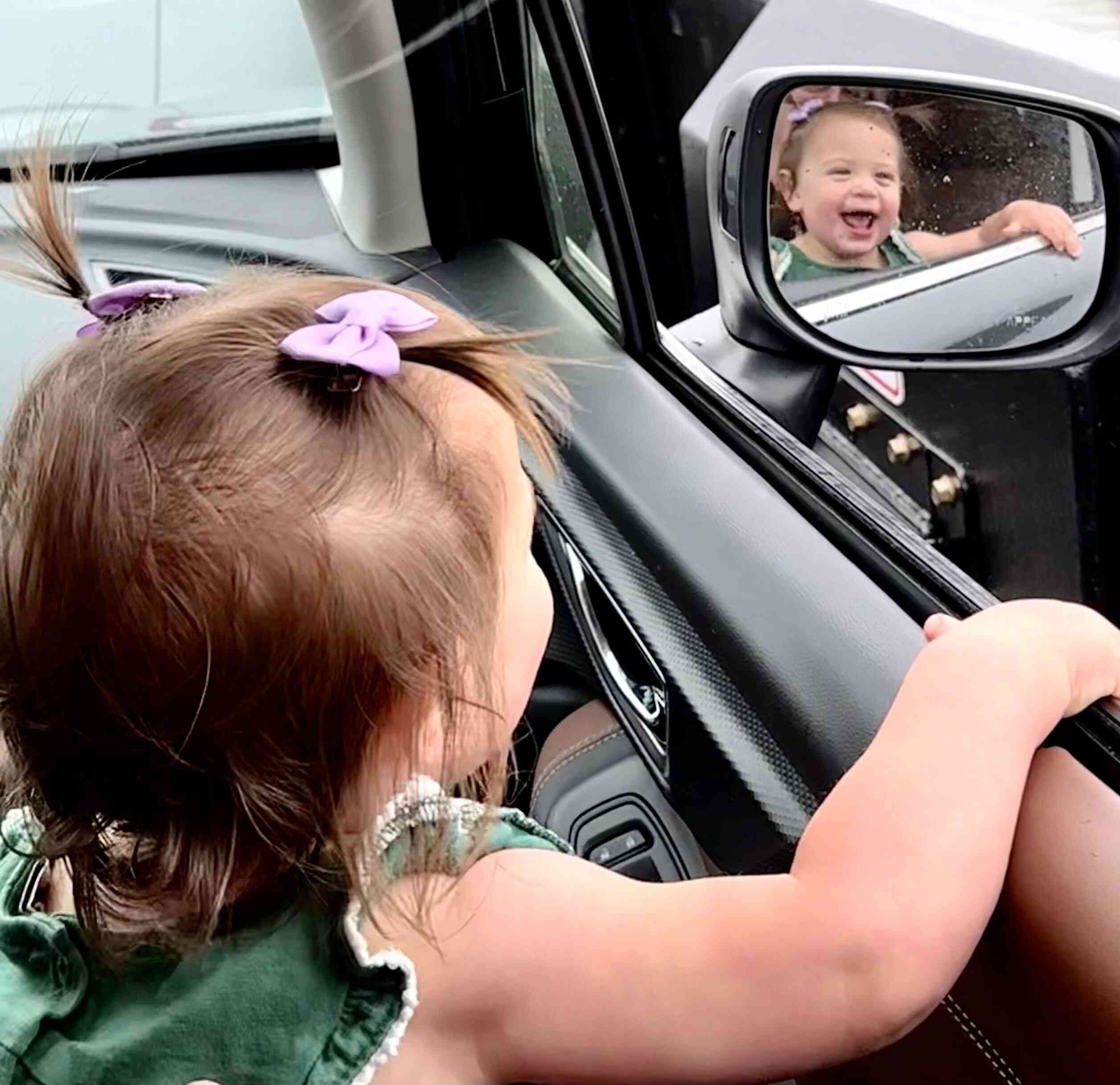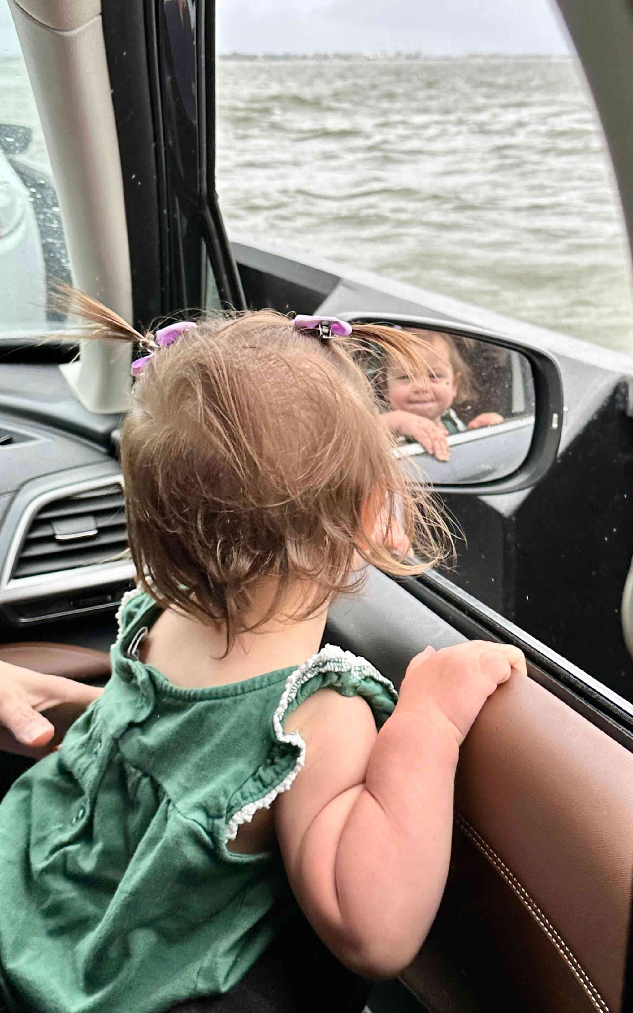 or have full reign of the front seat, and then sit on Mimi's lap while looking at yourself in the mirror and endless amounts of "aqua" out the open window?!