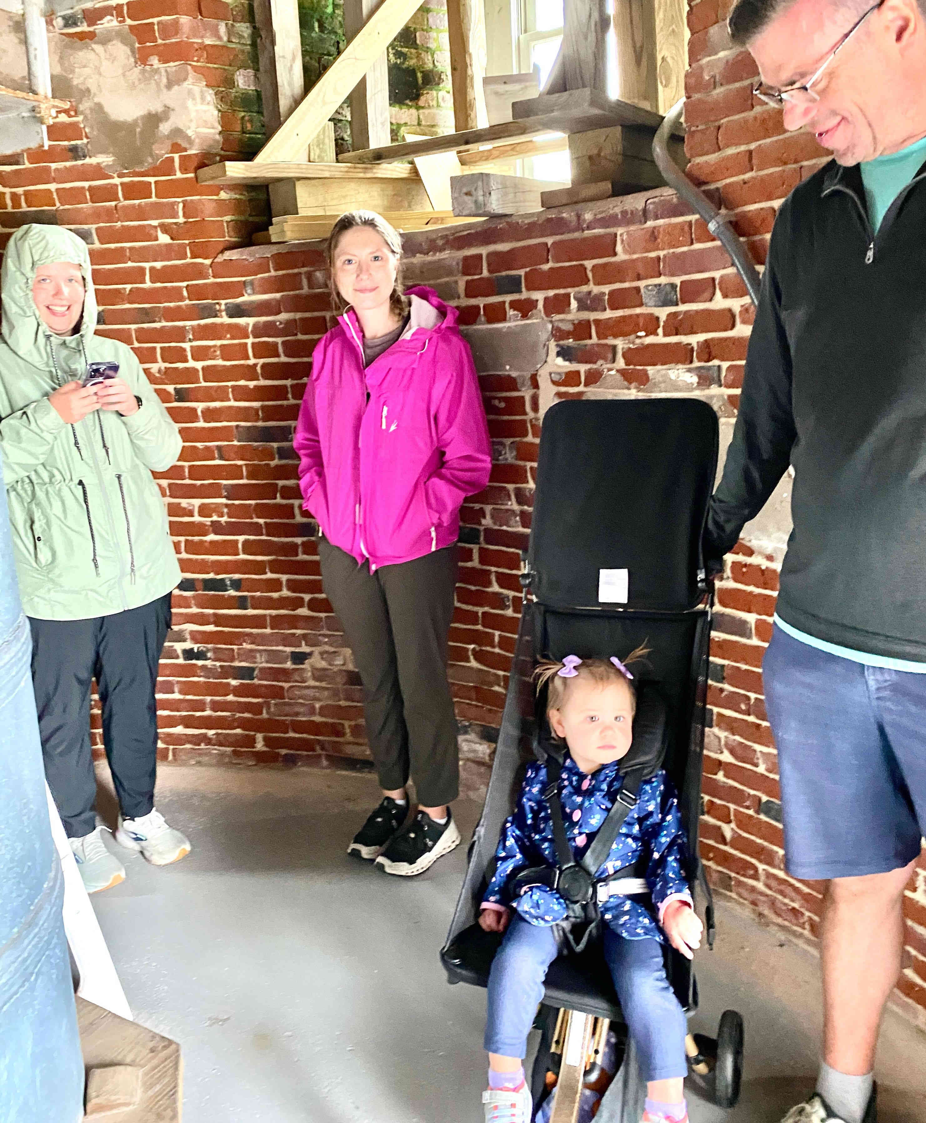 Monday was kind of a yucky day but we decided we needed to get the little ones out of the house anyway. Breck and I were kind of pushing to go see the lighthouses so we set out for Cape Hatteras Light House. This is one of my favorite light houses and I excited to show it to my grandkids, however, when we arrived there the entire lighthouse was rust color and covered in scaffolding! There was construction going on with these tall gates everywhere, even the museums were closed. I spoke with the Ranger who said Ocracoke Lighthouse was open and there were things to see and do on the island. She convinced me even though the ferry ride would be 1 1/2 hours one way.