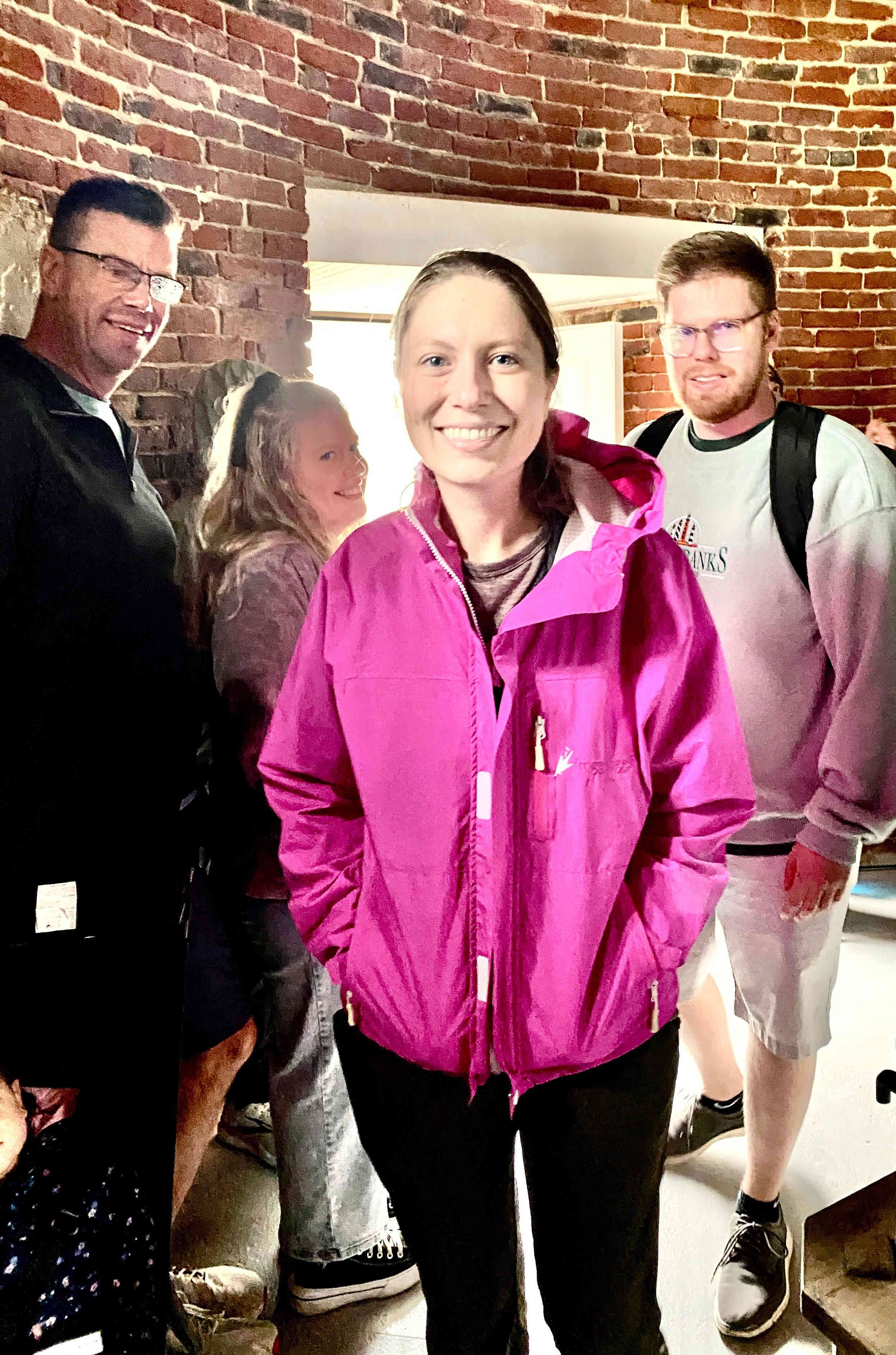 As we squished inside the bottom of the lighthouse to get out of the rain, we once again spoke with the Ranger who recommended some restaurants for dinner. Even though it was quite early for dinner, the ferry line of cars trying to get off the island went on for miles when we arrived, so we knew we could be in the ferry line for a very long time just to get back on the boat.