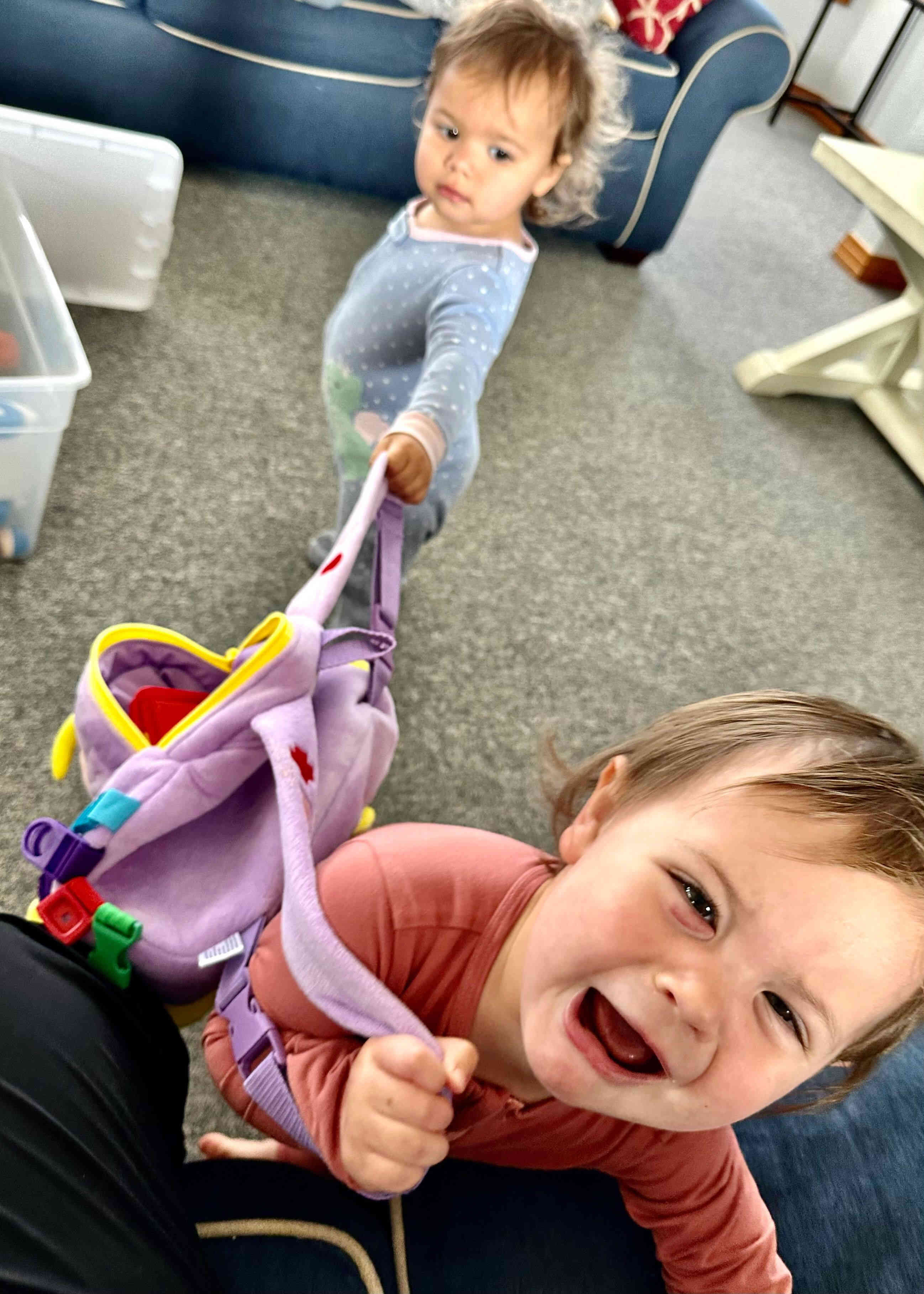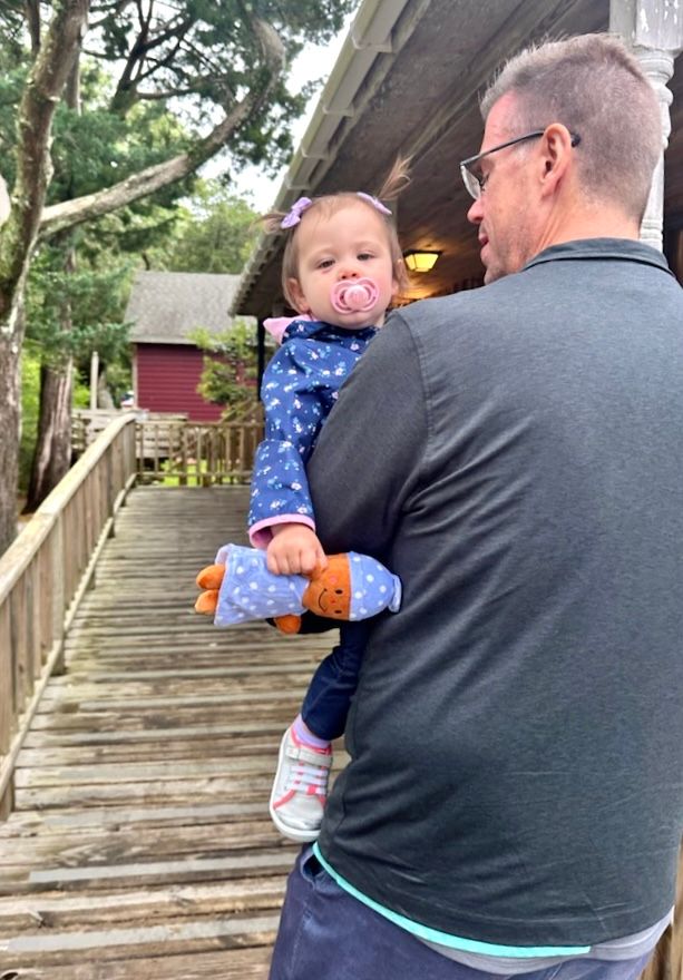 Camila putting Daddy on baby duty so she can also climb the steps, just like her cousin Finn!