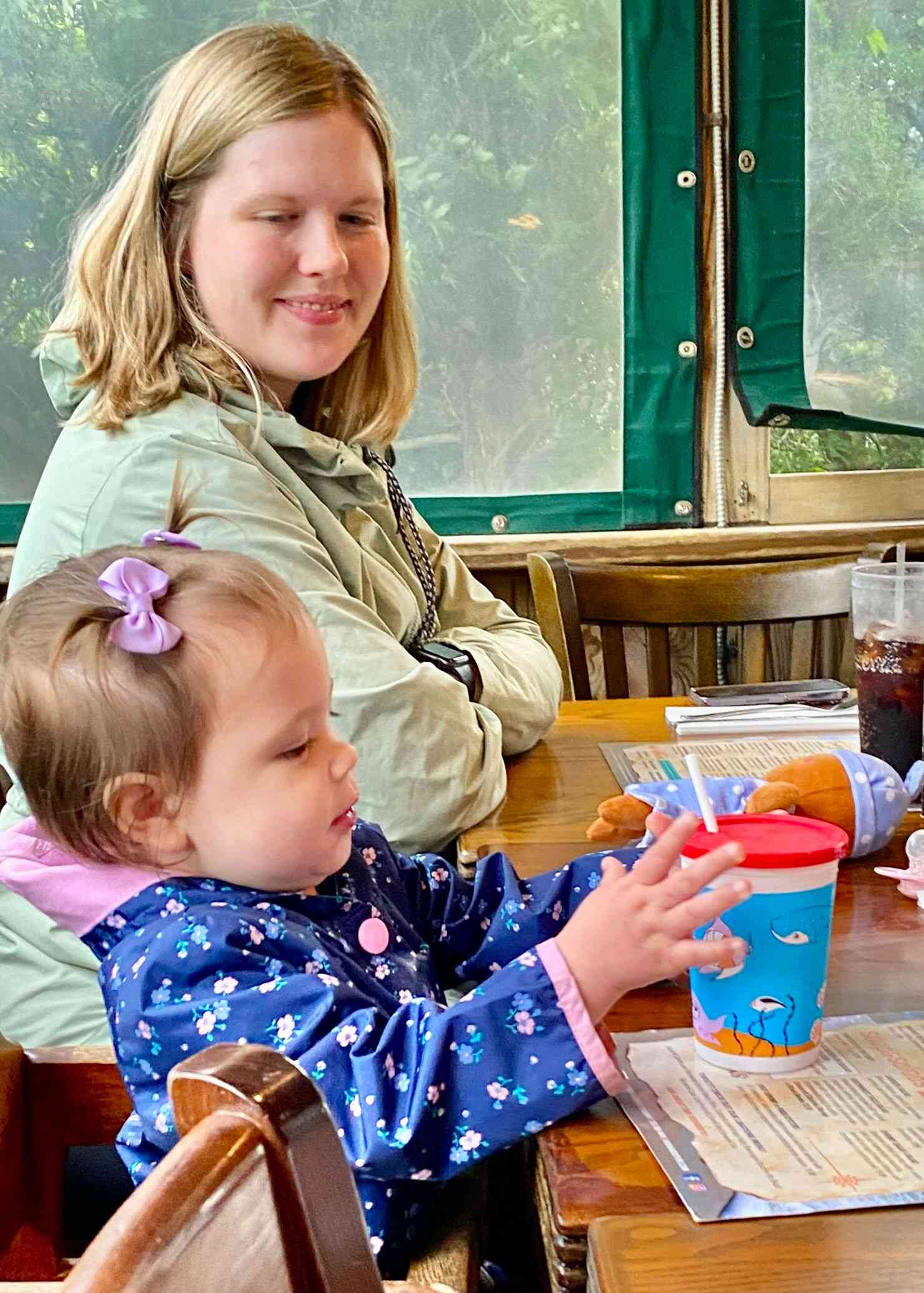 The girls got their own cool cups with straws,
