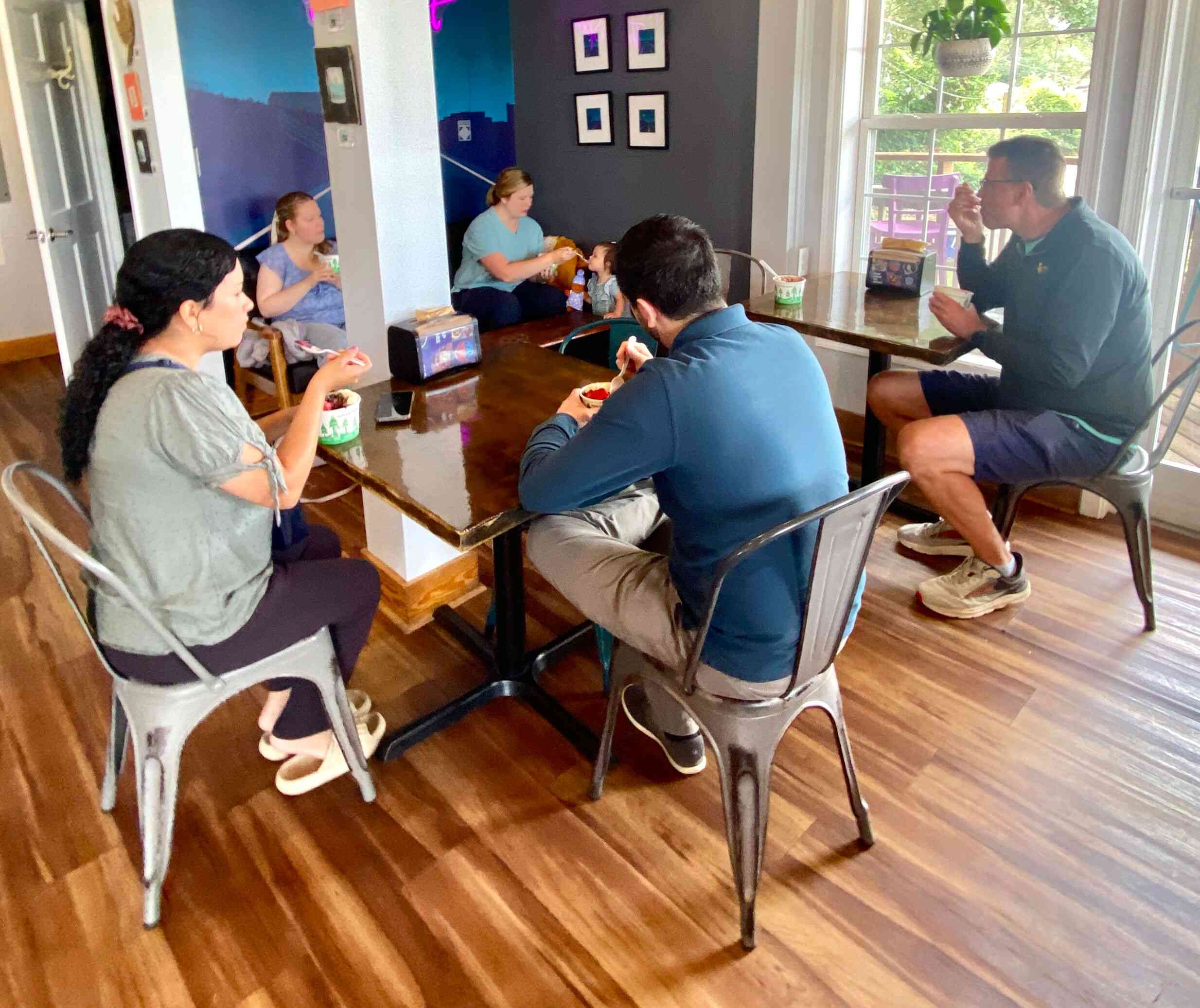 Everyone enjoying their bowls...