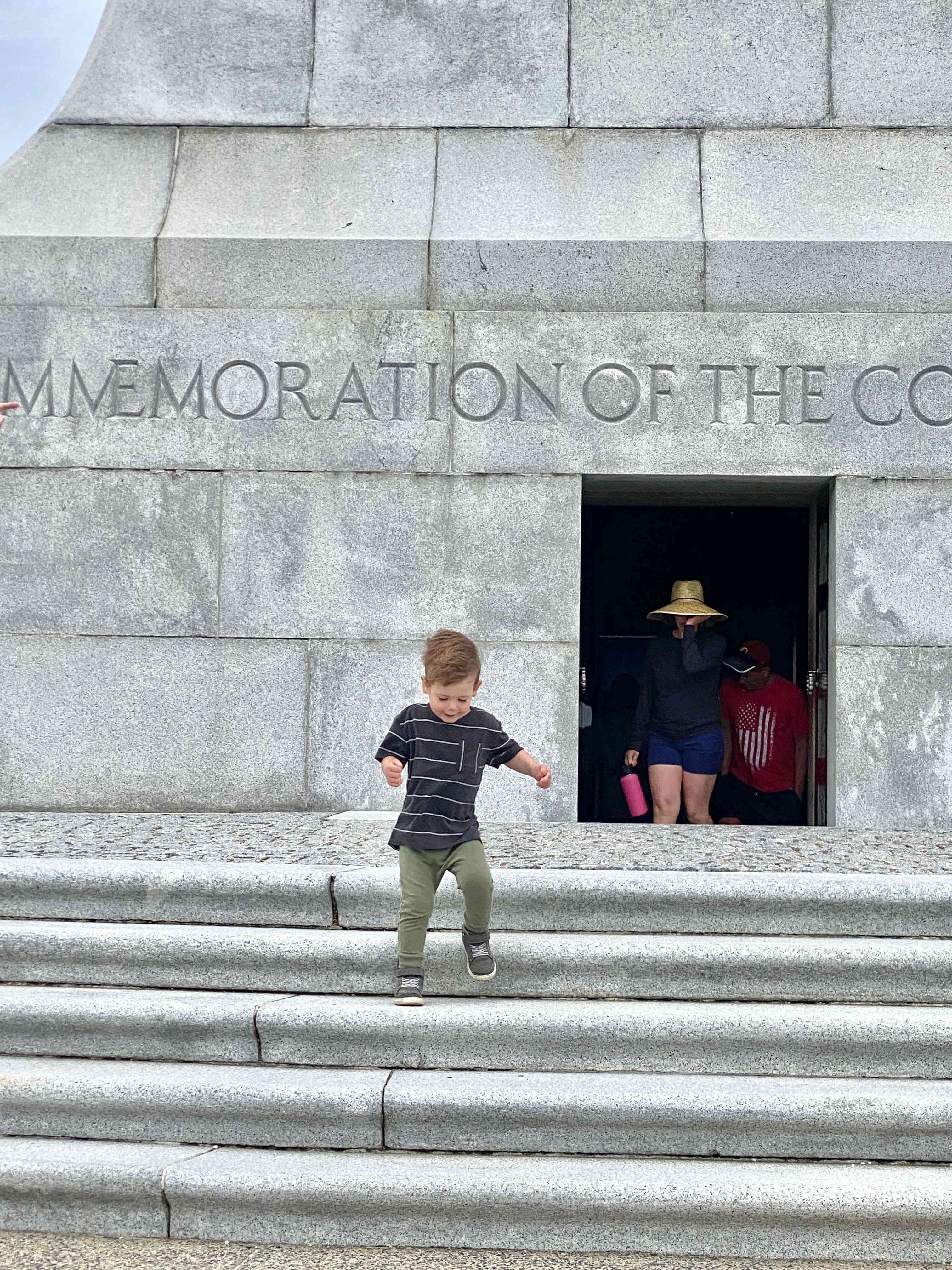 Finn on the steps of the memorial.