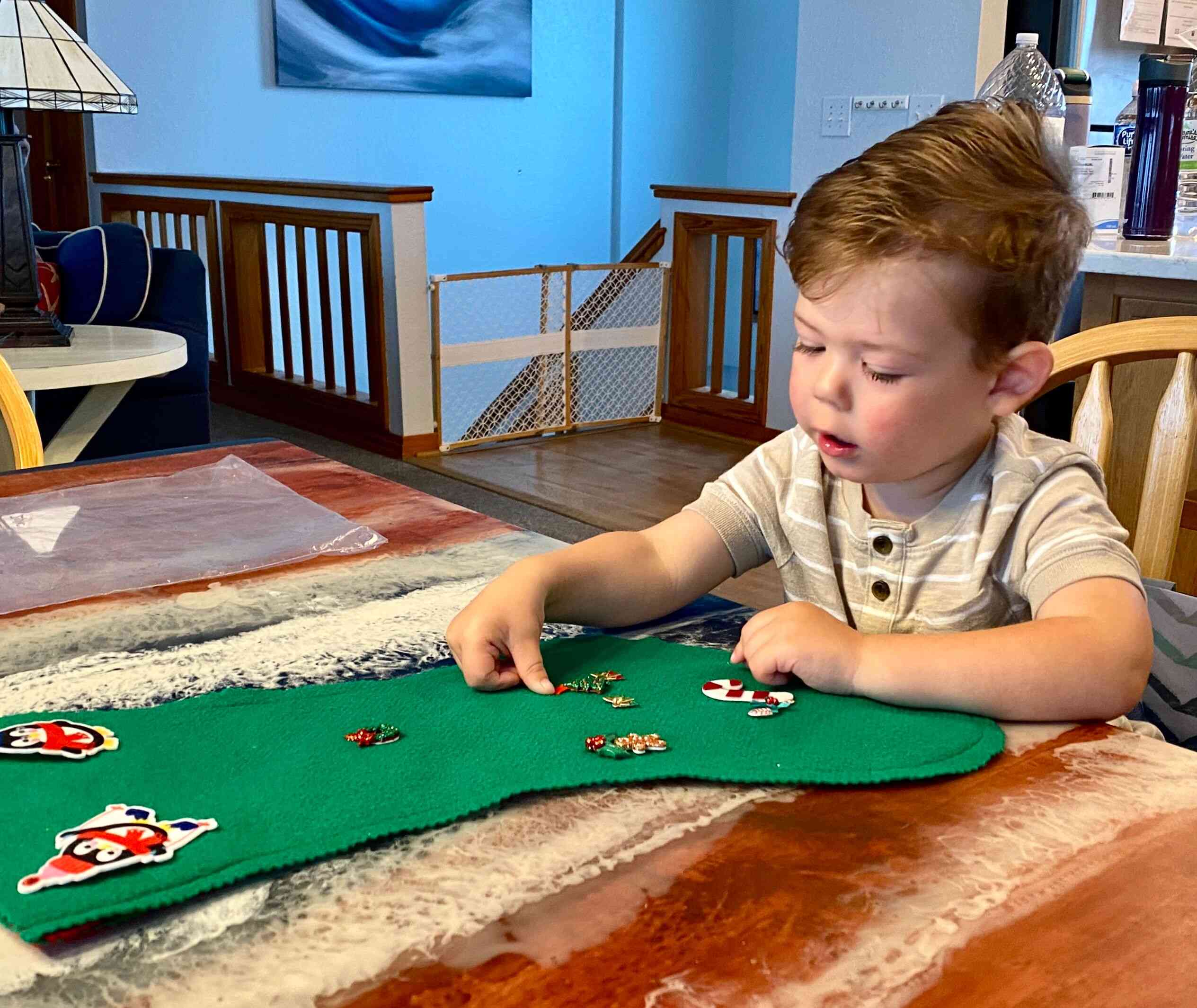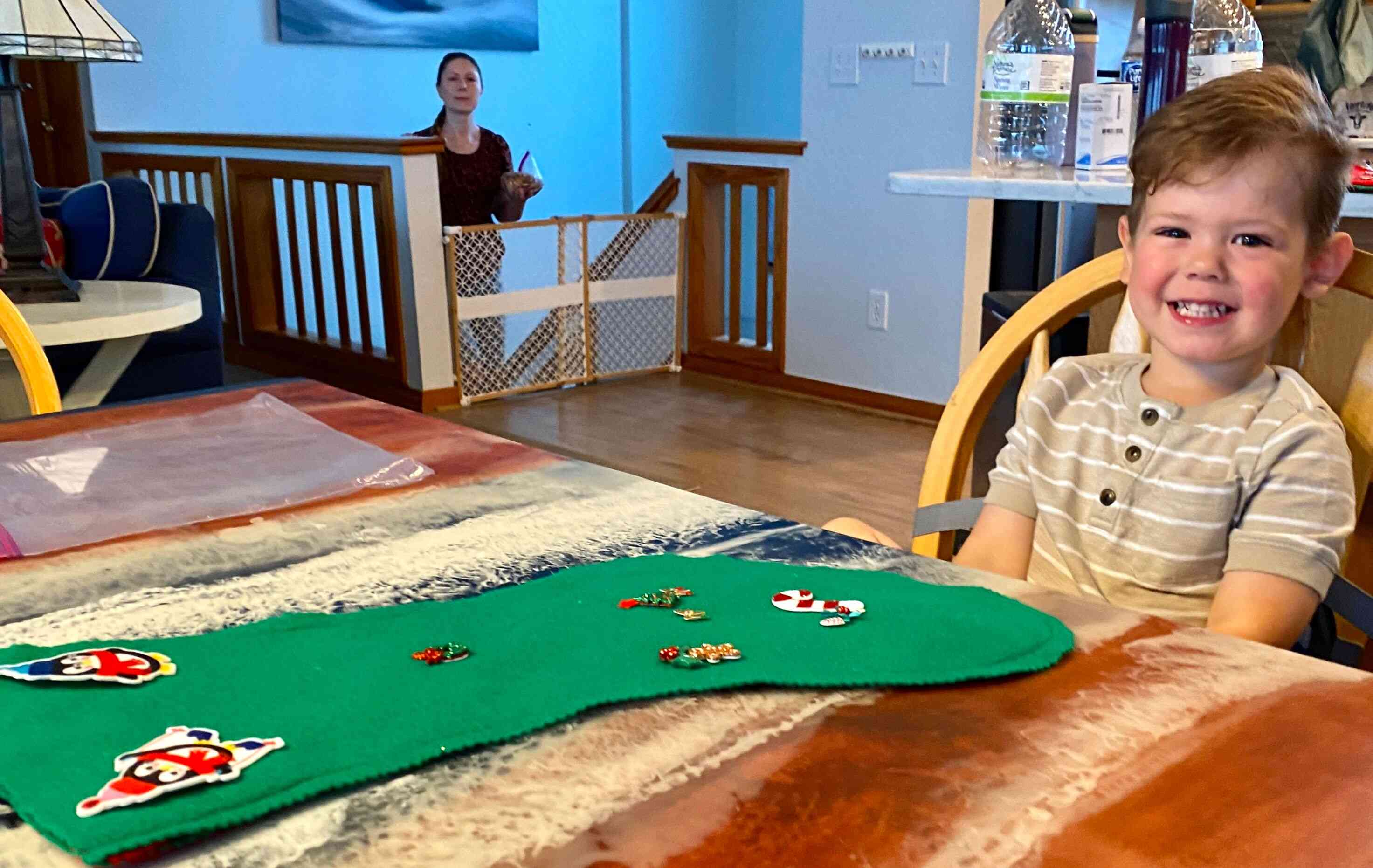 Finn decorating his Christmas stocking.