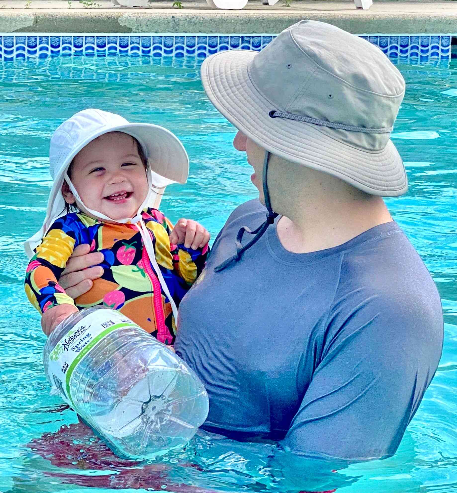 Daddy taking her out for some fun in the waves!