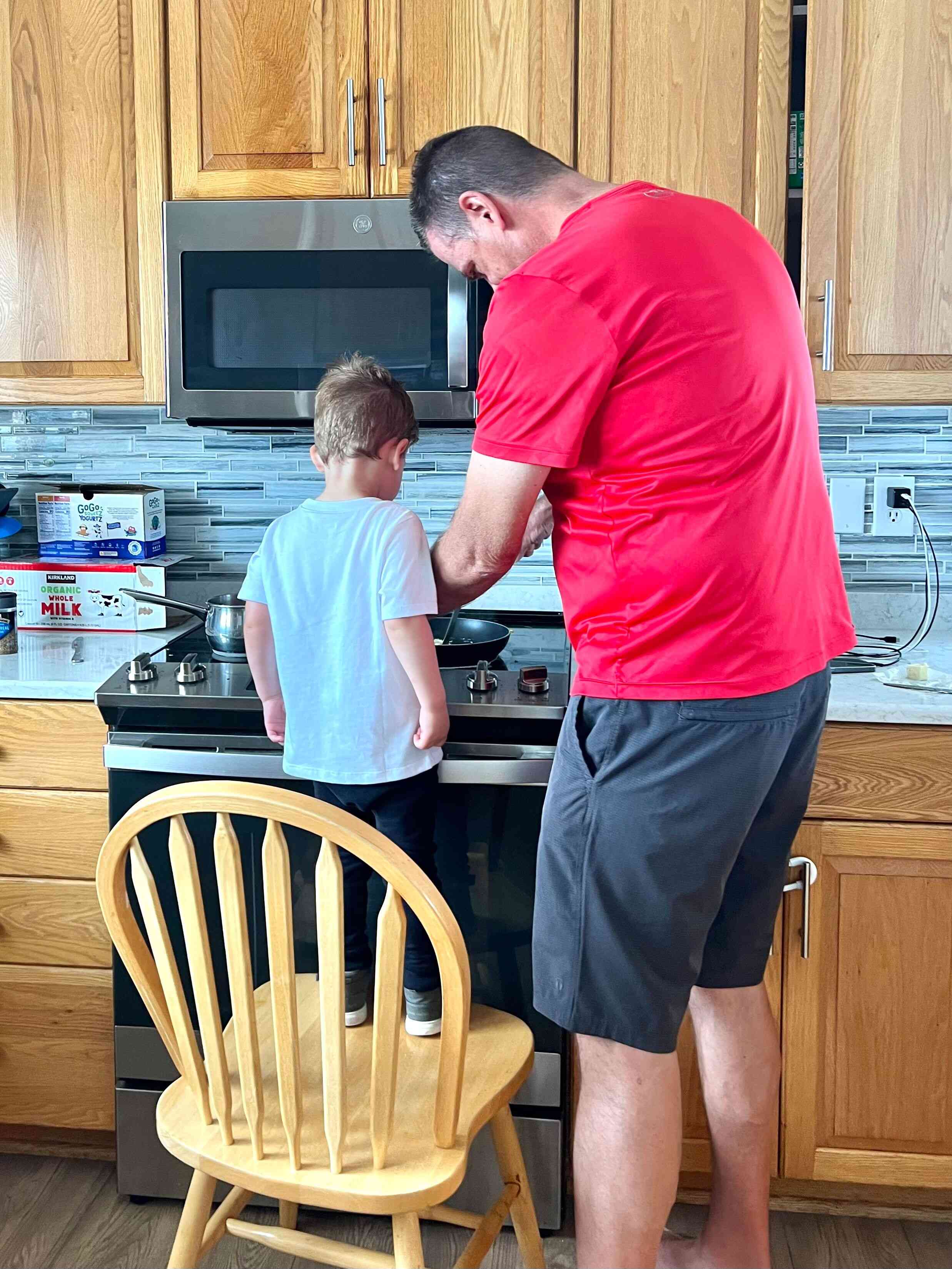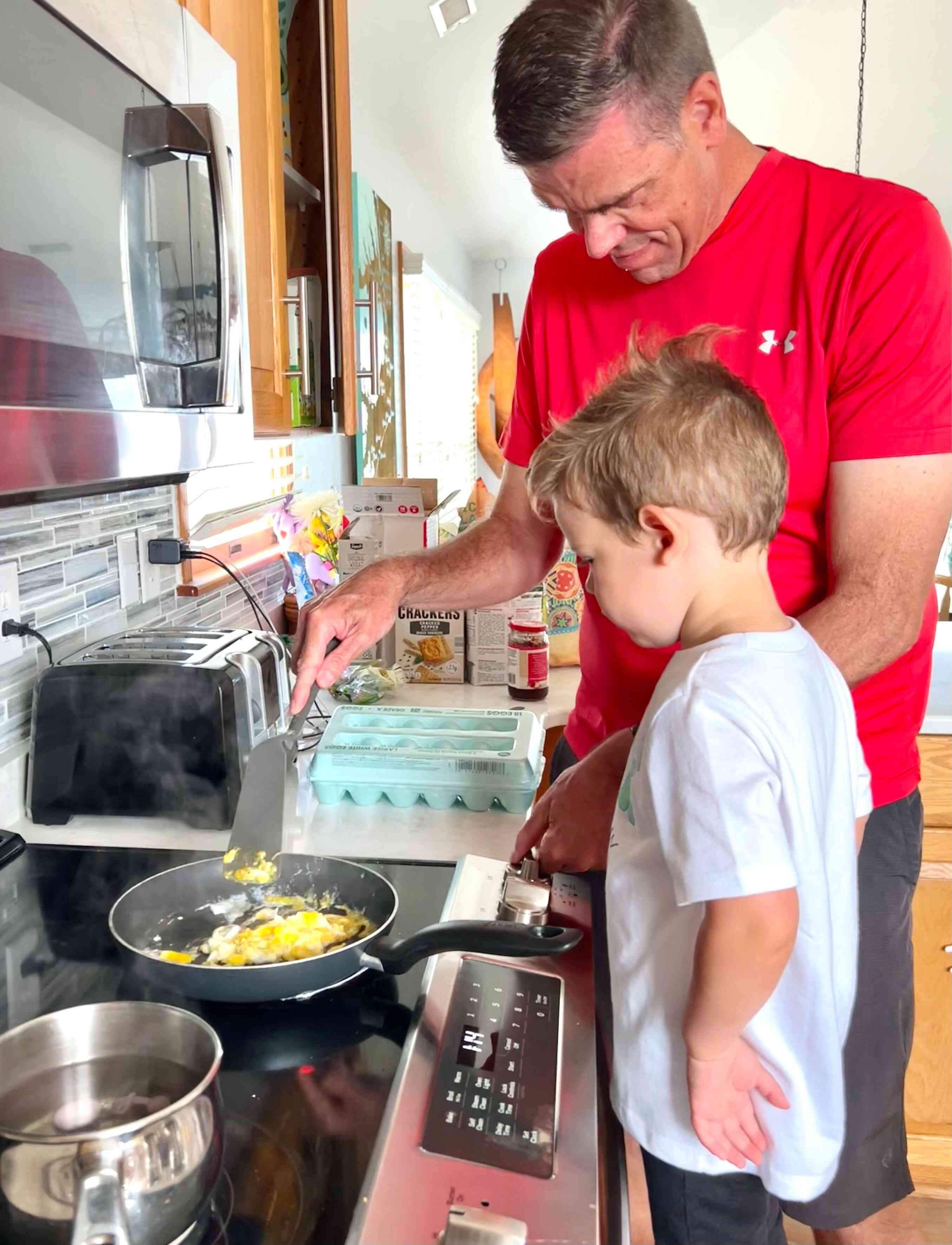 Brad and Finn cooked up some eggs for breakfast