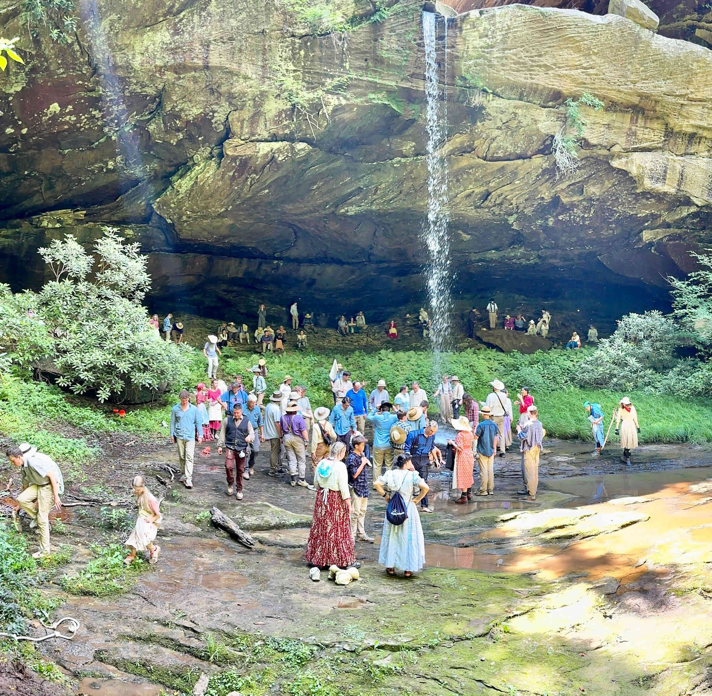 The waterfall and rock overhang were picturesque!