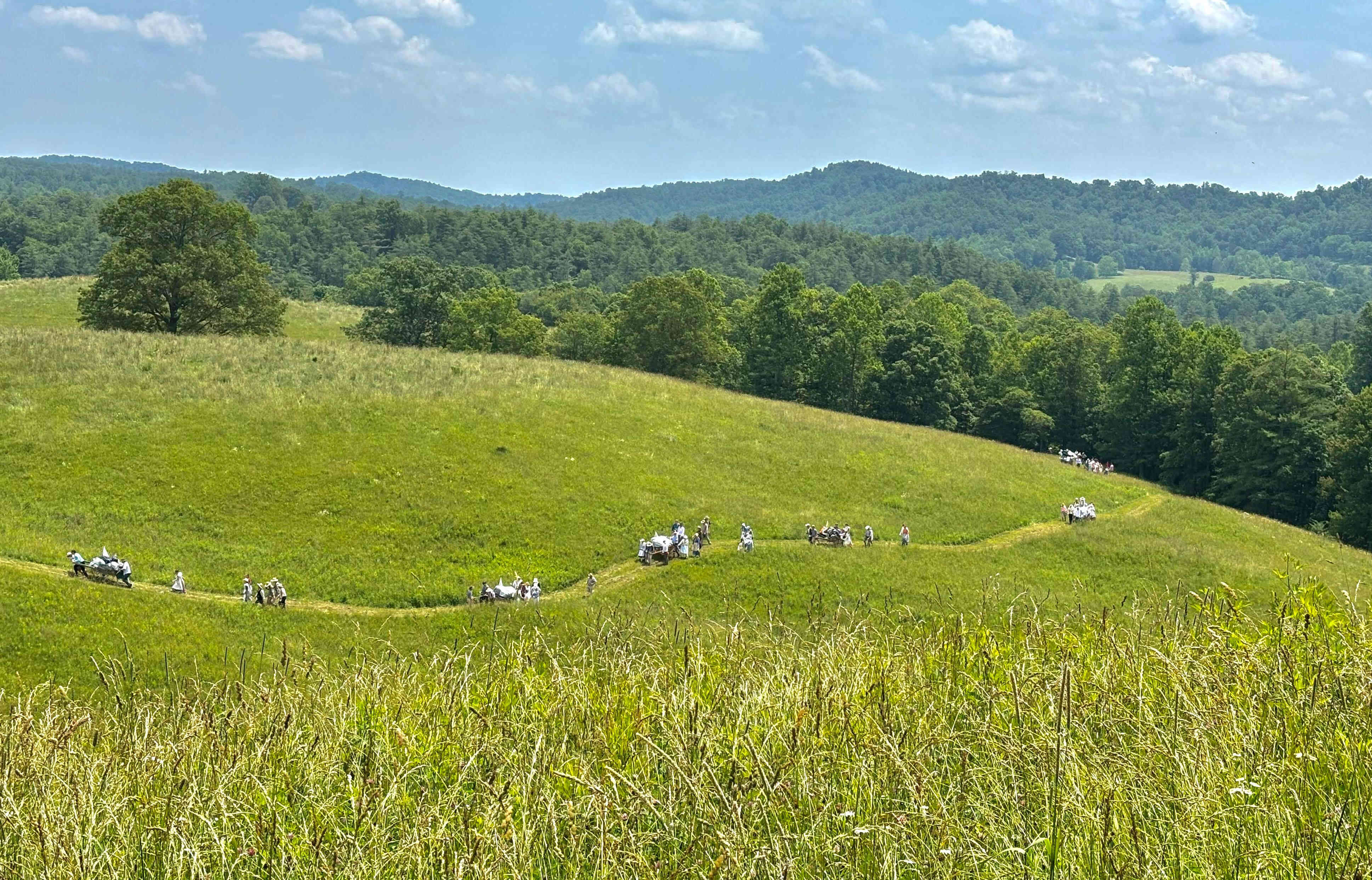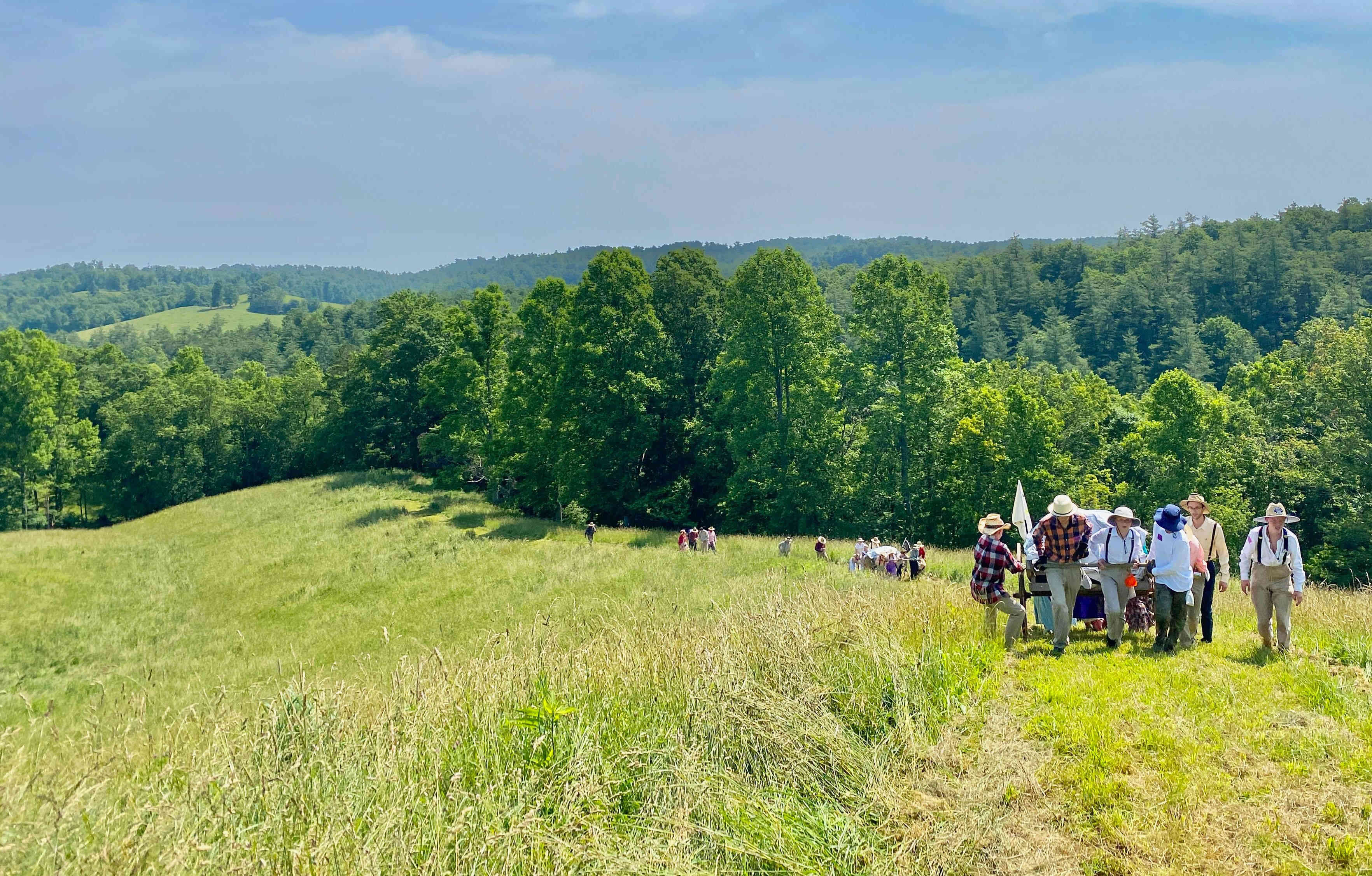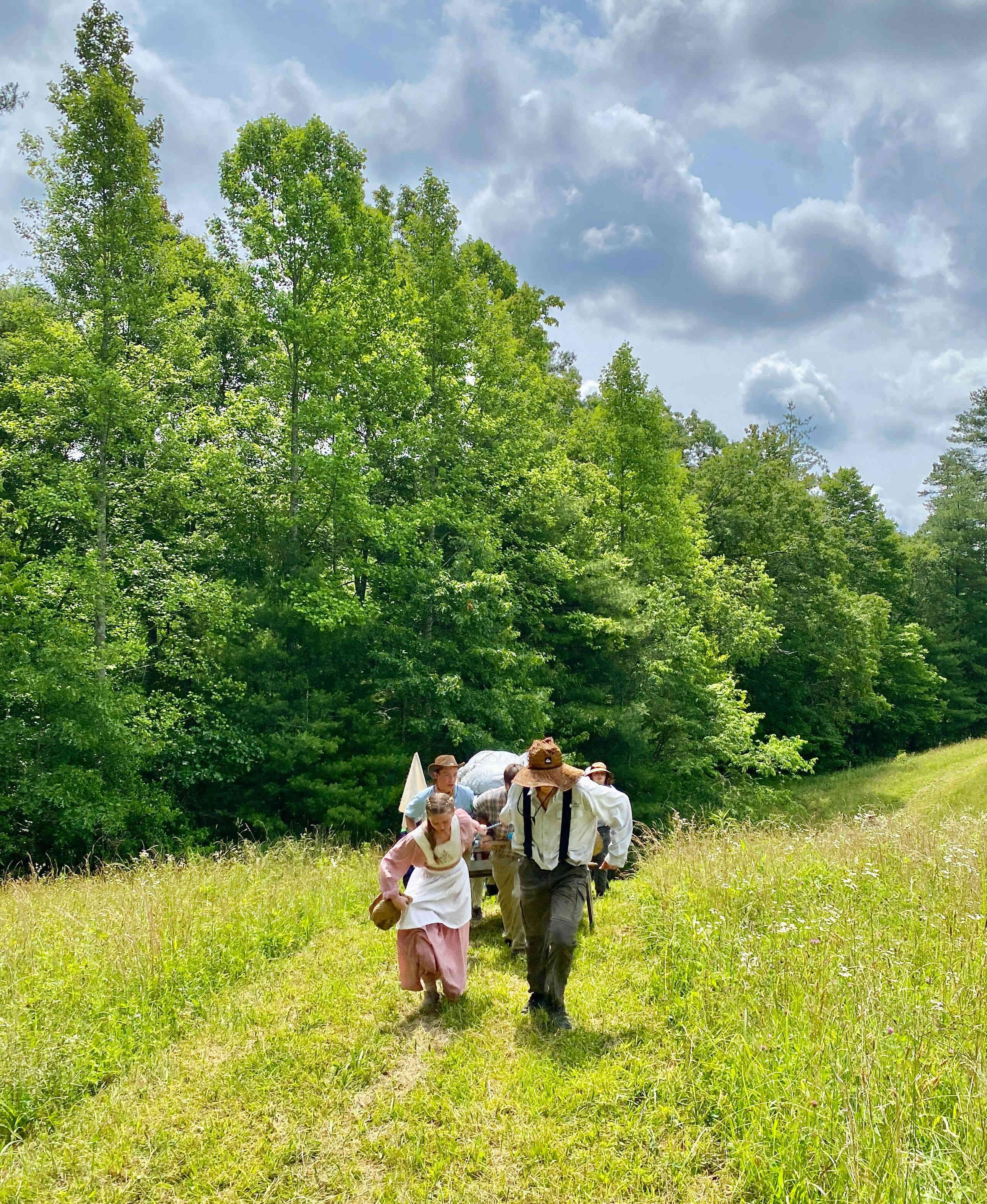Also on this day, all the able-bodied men were "called to war" so the woman had push and pull the handcarts for part of the time. I helped push this cart (I'm the one with the backpack) because one of the girls was sick from heat exhaustion so I pushed in her place.