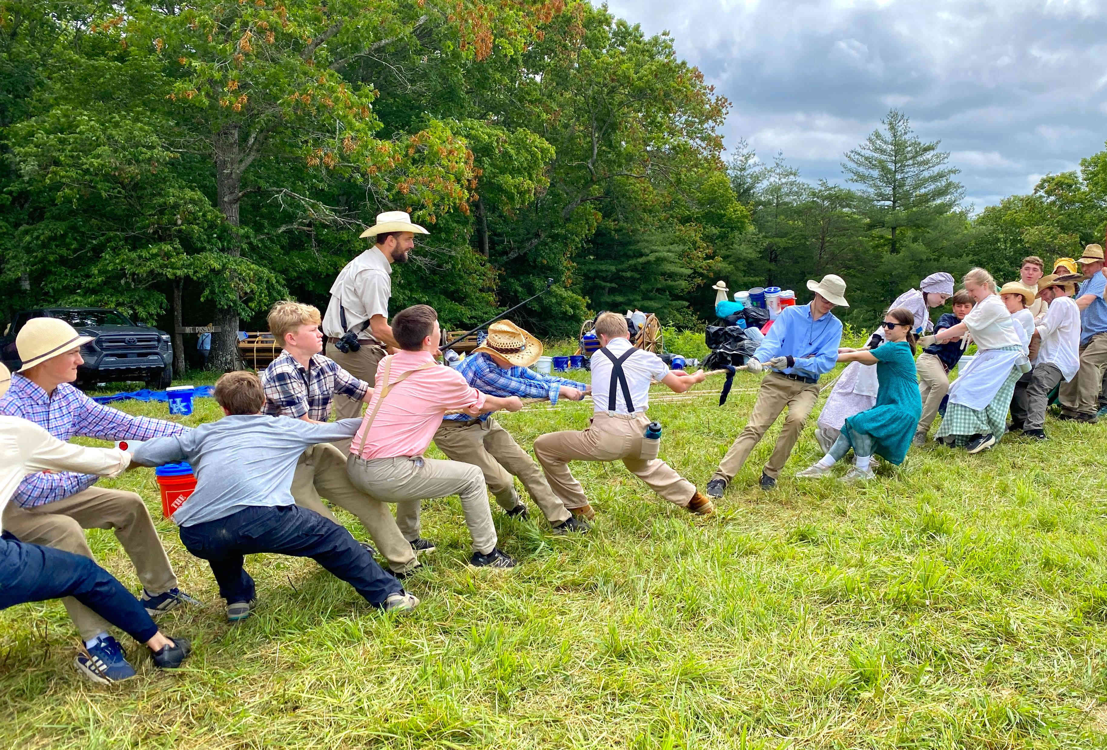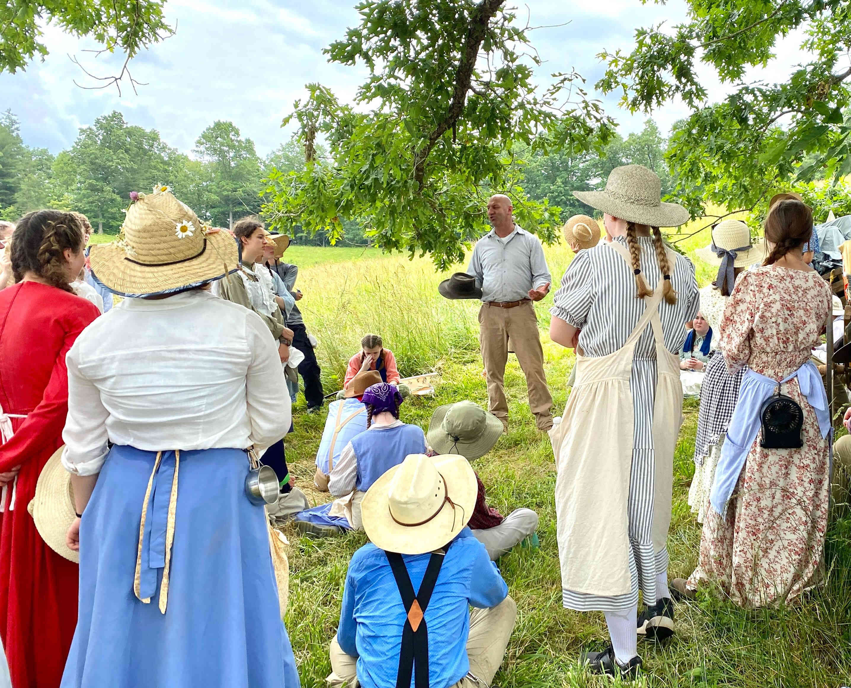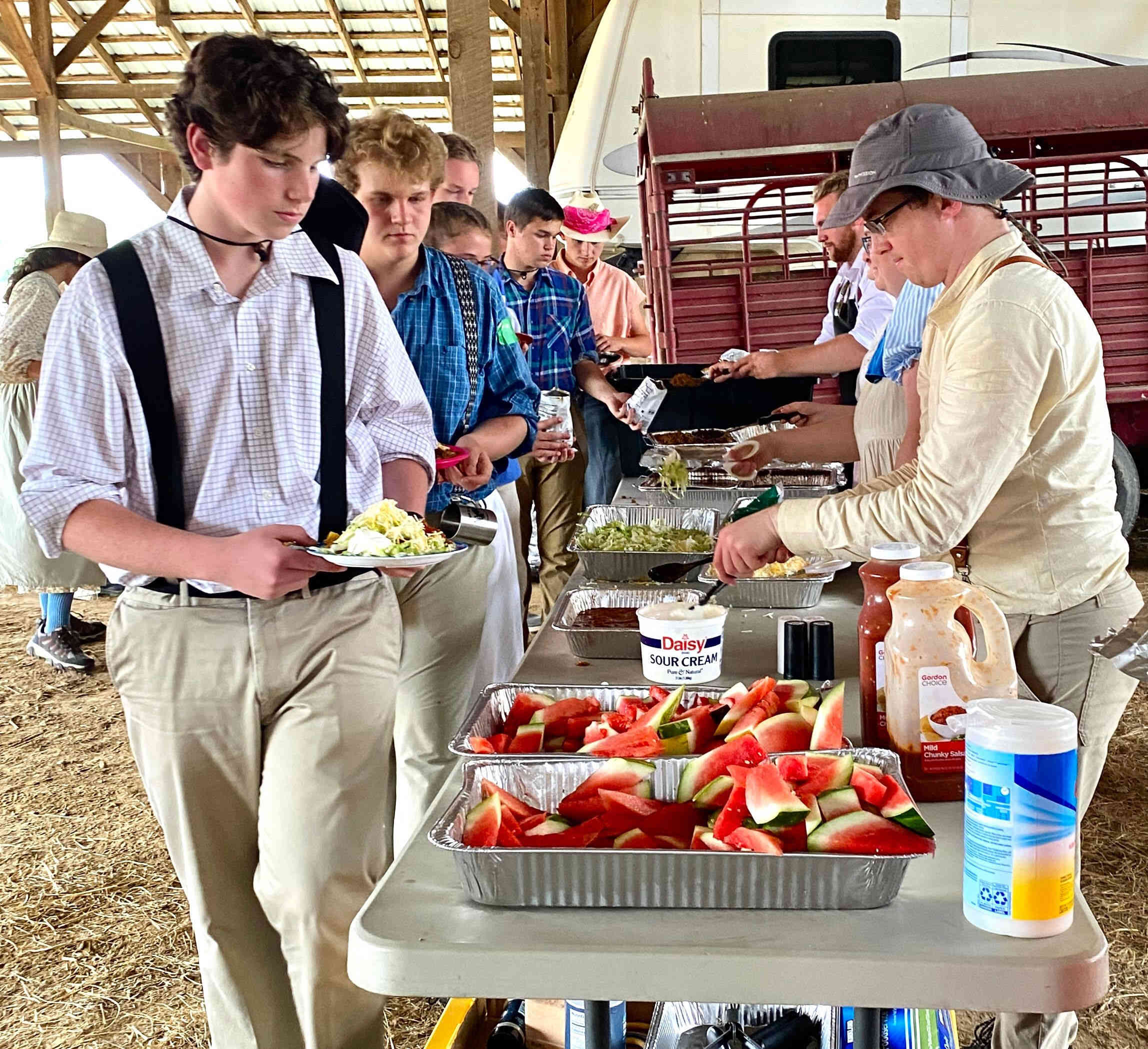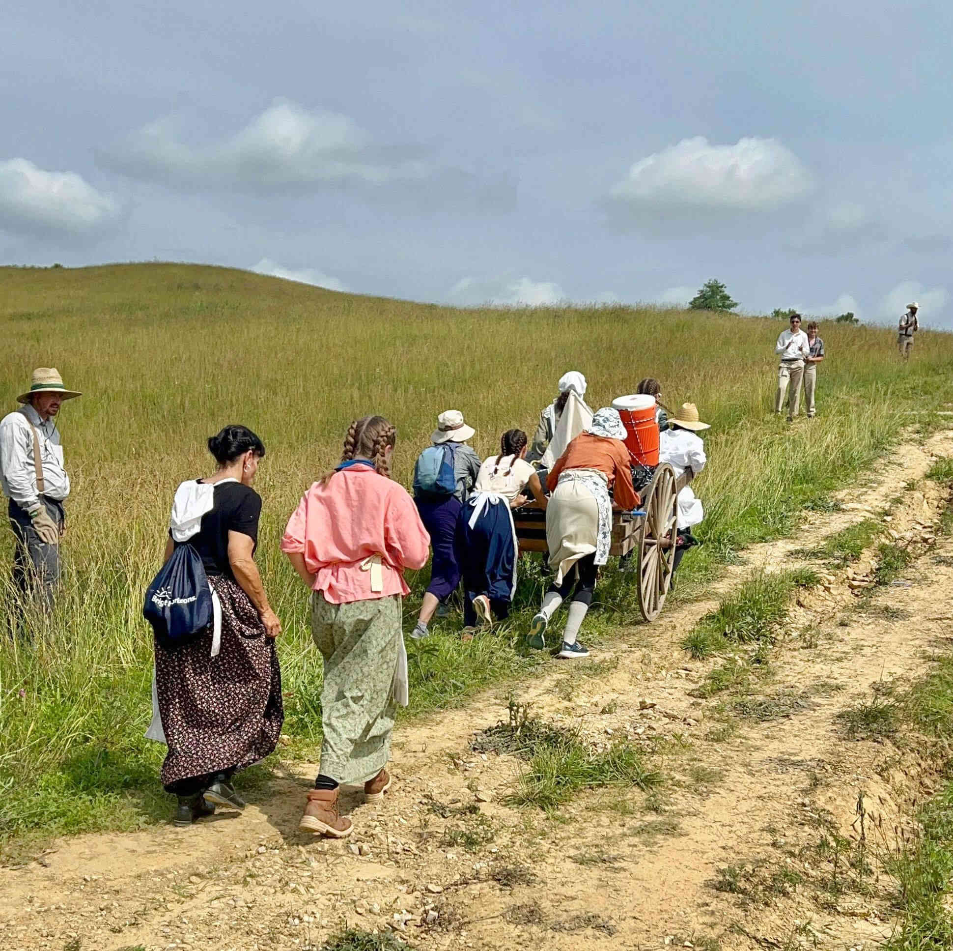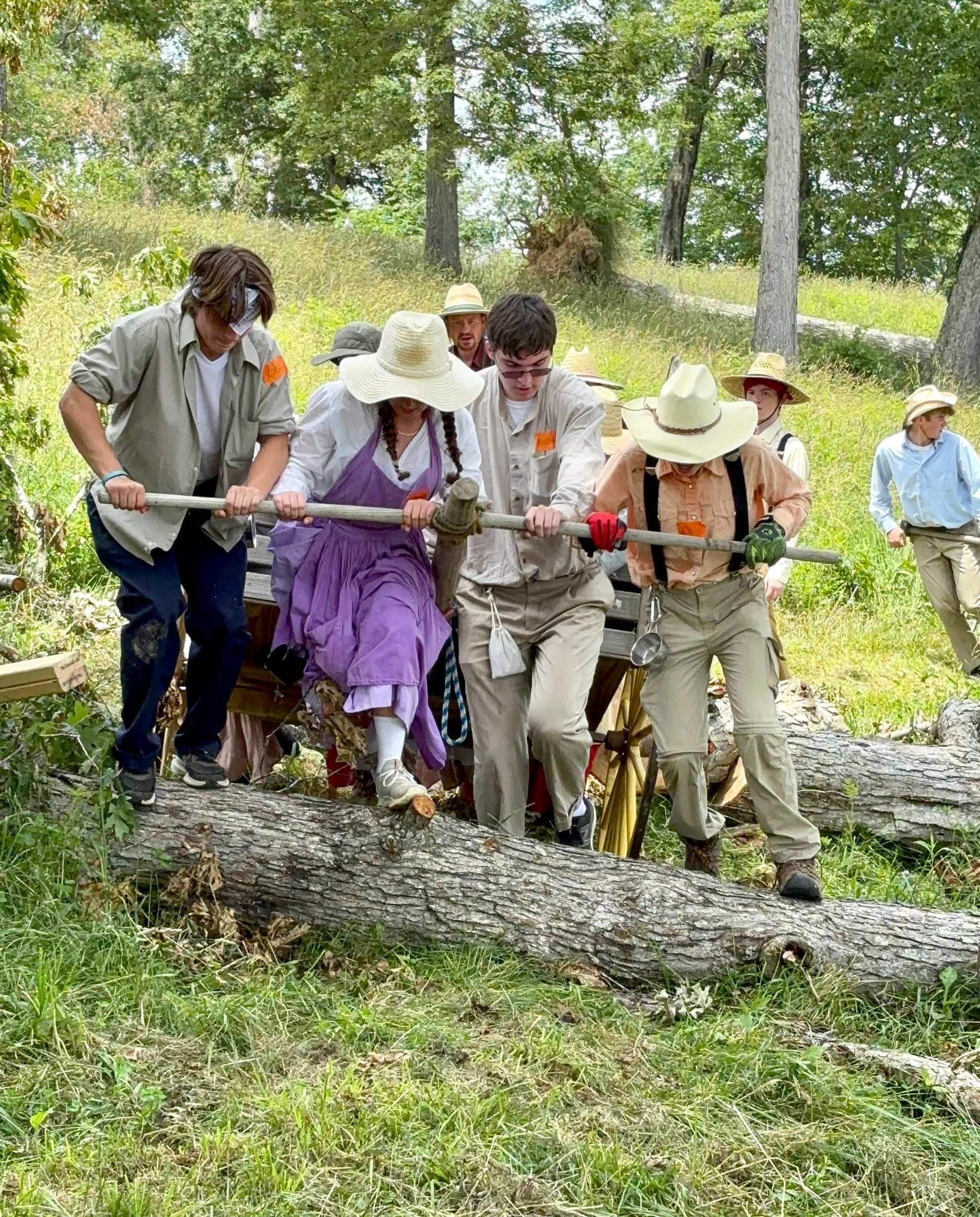 The weather was again very hot and humid, but the kids took numerous water & Gatorade breaks which was combined with true pioneer stories told by adults, who ancestors came across the Plains!