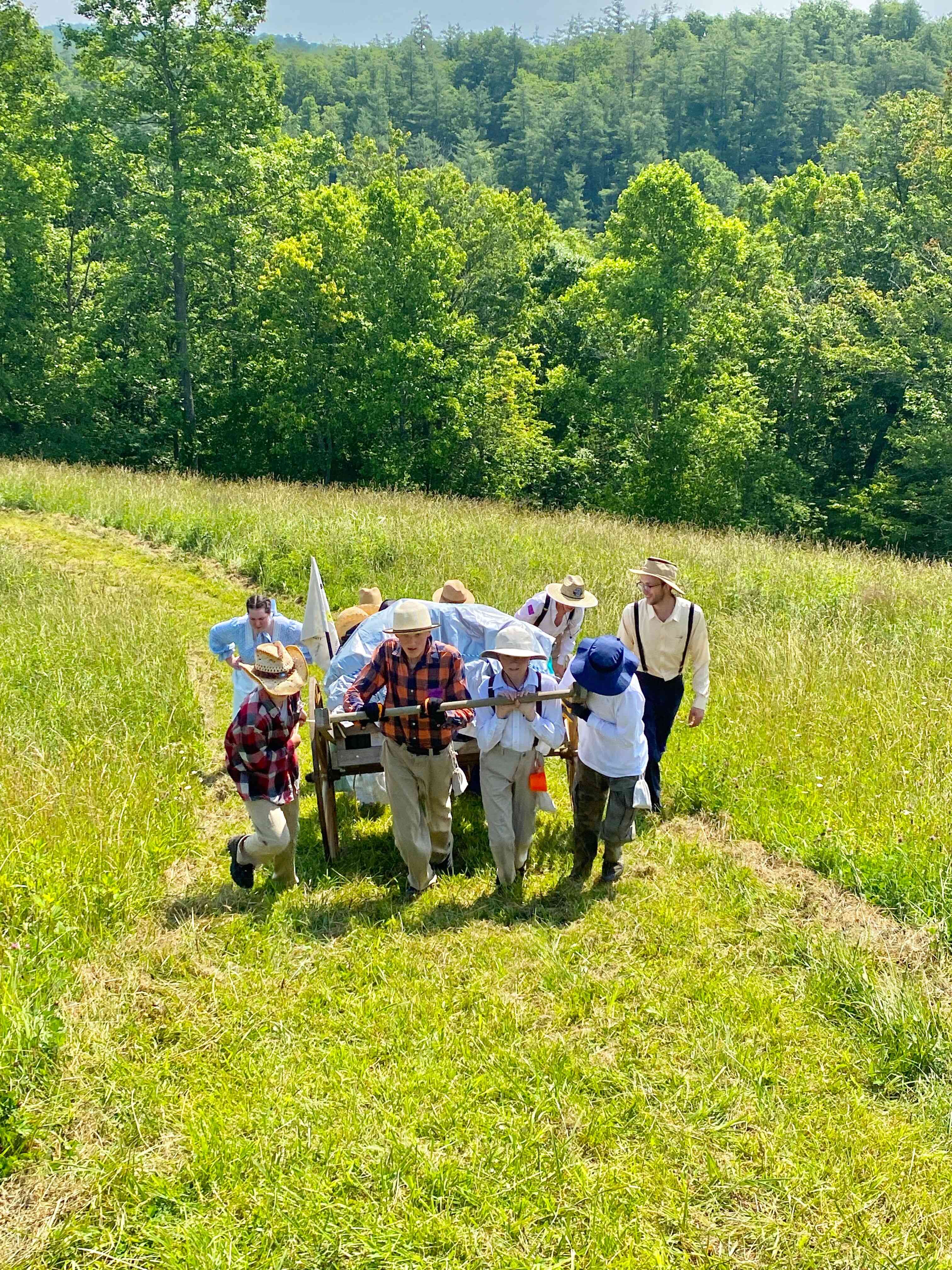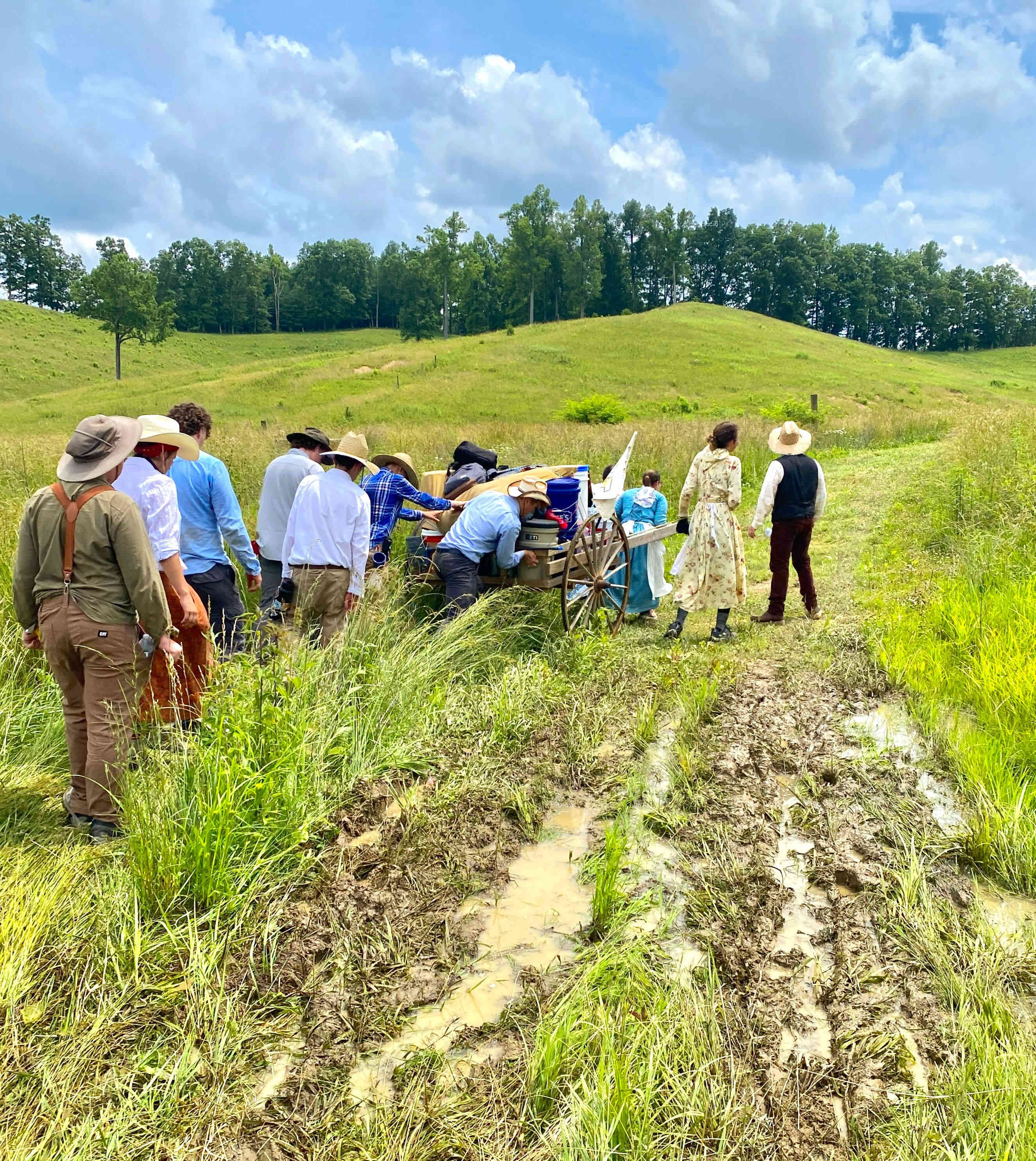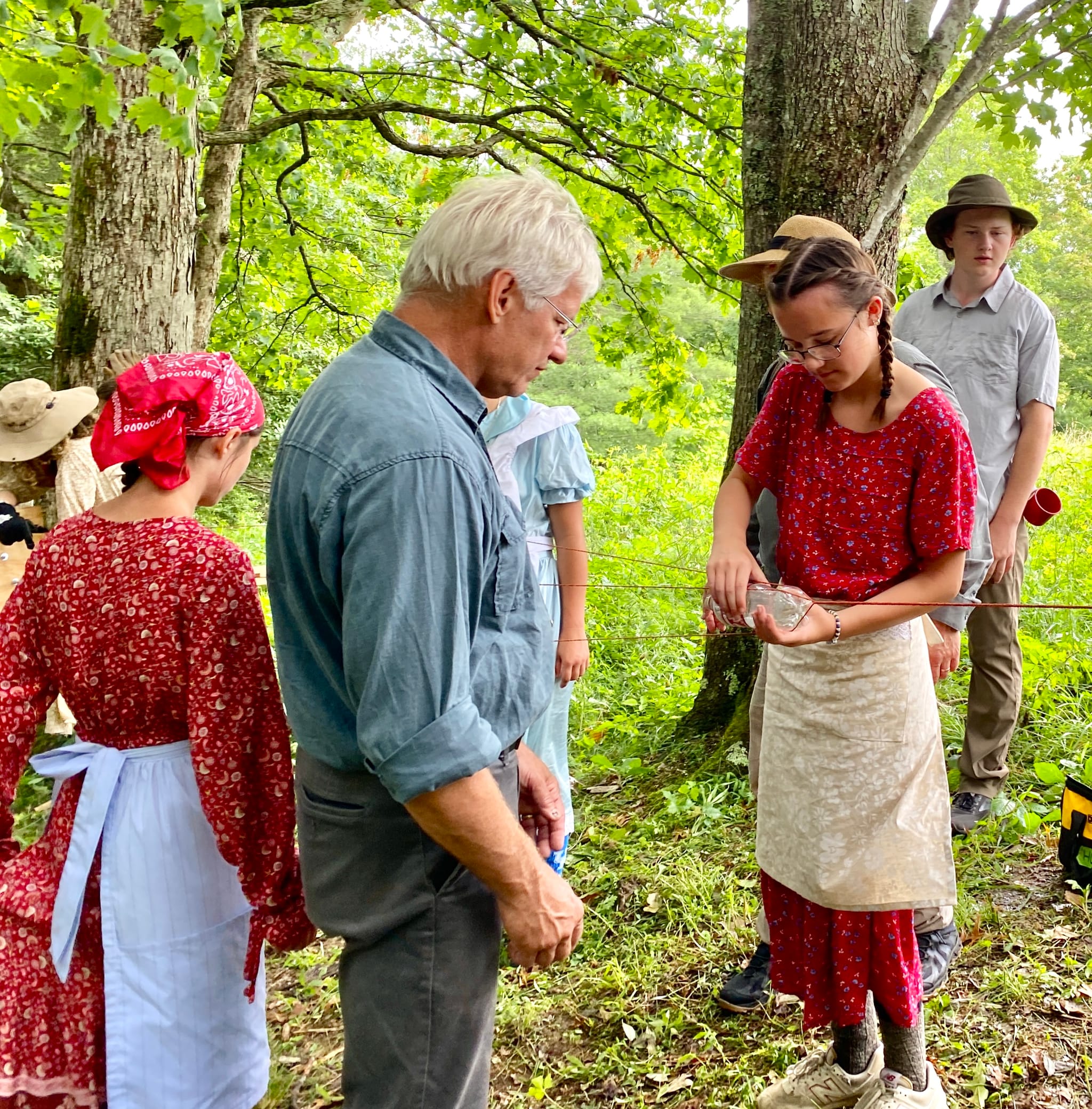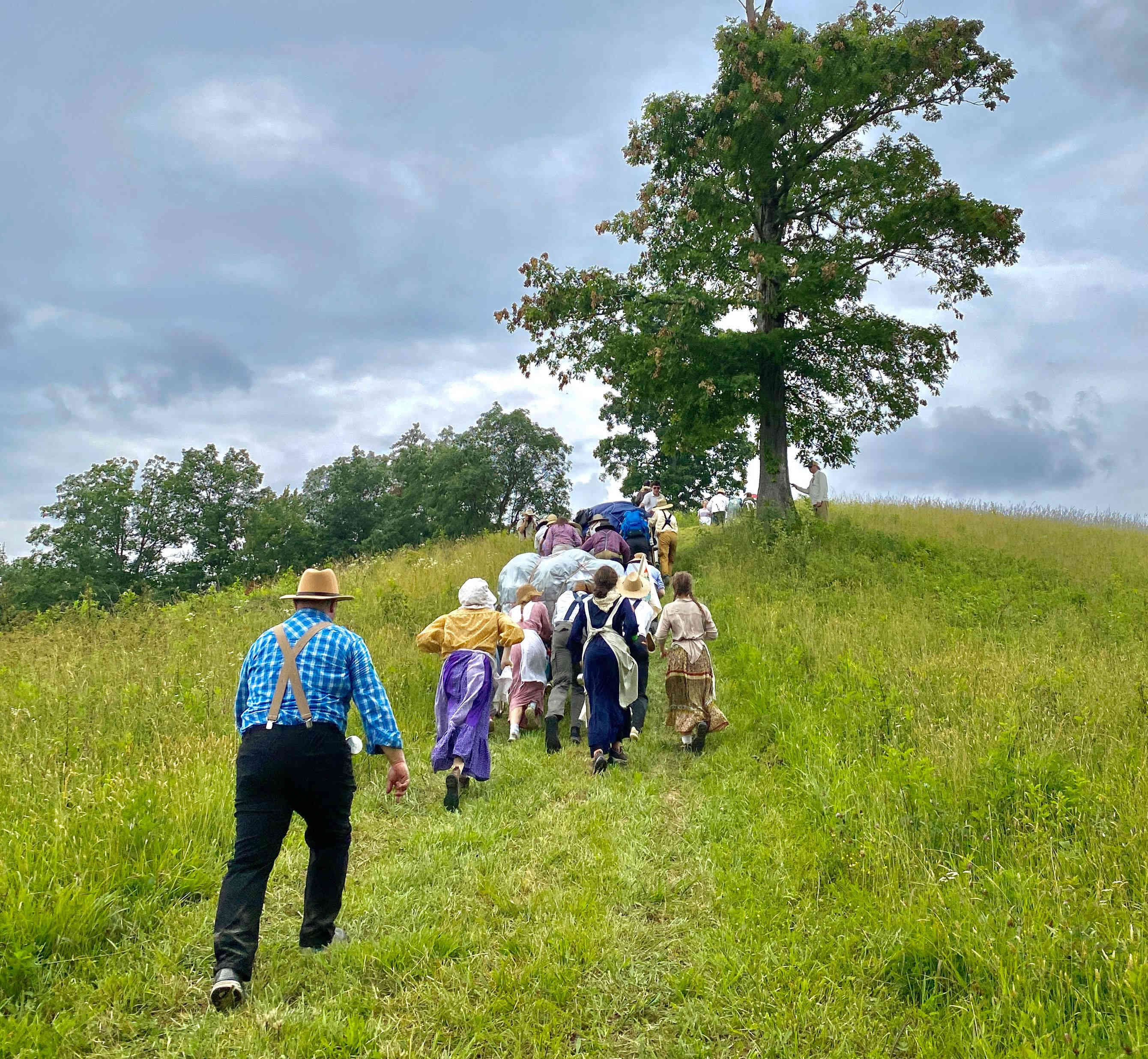 The weather was again very hot and humid, but the kids took numerous water & Gatorade breaks which was combined with true pioneer stories told by adults, who ancestors came across the Plains!